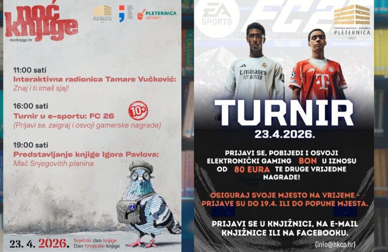 [NAJAVA] Noć knjige u Hrvatskoj knjižnici i čitaonici Pleternica