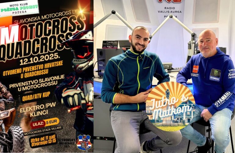 Moto klub Požega Promet organizira drugu od tri ovogodišnje utrke Prvenstva Slavonije u motocrossu i quadcrossu, te predzadnju utrku Otvorenog prvenstva Hrvatske u quadcrossu, koja će se održati u nedjelju, 12. listopada na poznatoj motocross stazi Villare. U današnjoj emisiji „Jutro s Matkom“ ugostili smo tajnika Moto kluba Požega Promet, Zlatka Jaroša, koji je najavio utrku.