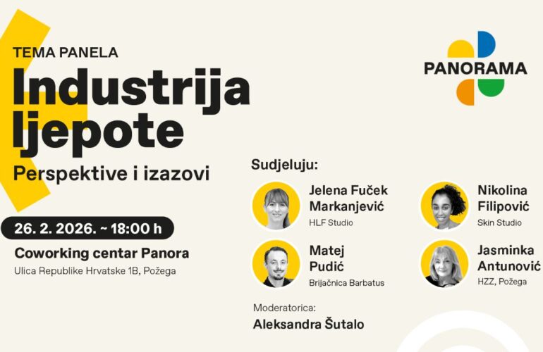 Ako već radite ili tek razmišljate o pokretanju posla u industriji ljepote, dođite 26. veljače u 18 sati u Coworking centru Panora i sudjelujte u razgovoru o perspektivama i izazovima svoga trenutačnog ili budućeg poslovanja. Sudjelovanje je besplatno i dobrodošli su svi zainteresirani!