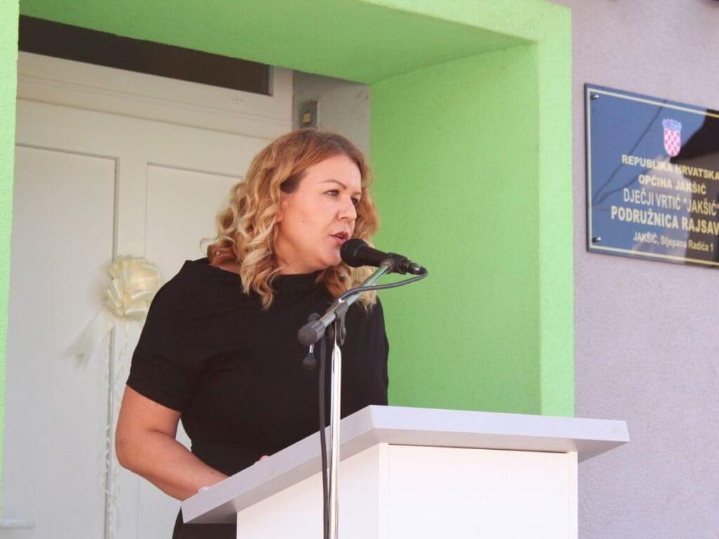 „Kad smo vidjeli što se događa nakon objavljenog natječaja, sredstva za dogradnju novog vrtića, za koje imamo građevinsku dozvolu, no još nismo uspjeli realizirati. Nije nam preostalo ništa drugo nego uz razumijevanje Požeško-slavonske županije i Osnovne škole Mladost Jakšić, krenuti u obnovu dječjeg igrališta i ograde uz područnu školu te nabavku namještaja, da bi početkom ove školske godine uspjeli otvoriti još jednu mješovito odgojnu skupinu. Hvala svima koji su sudjelovali, izvođačima radova koji su stvarno u hicu sve odradili, da danas na naše zadovoljstvo možemo svečano otvoriti ovu skupinu u Rajsavcu.“