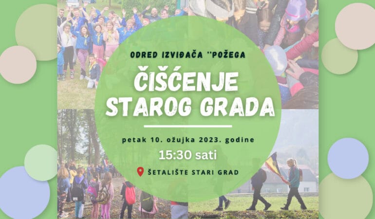 Povodom proslave Dana grada Požege, članovi Odreda Izviđača Požega i voljni pojedinci okupe se kako bi očistili Stari grad. Kao i svake godine, pa tako i ove 2023. godine, okupit će se na šetalištu Stari grad, 10. ožujka u 15,30 sati, kako bi svi zajedno očistili zelenu oazu grada. Turistička zajednica Grada Požege i Odred Izviđača Požega pozvali su sve zainteresirane da se pridruže, a potrebno je ponijeti samo rukavice i dobru volju.