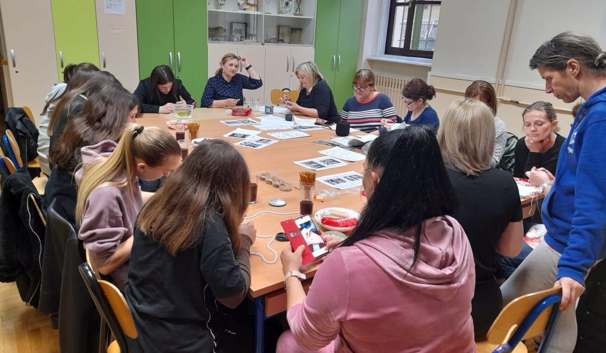 Folklorni ansambl Požega, u suradnji s Učeničkom zadrugom Pčelice OŠ Antuna Kanižlića, organizirao je u petak Drugu radionicu izrade tradicijskog nakita ogrlica-kajica, šticli i đerdana pod nazivom „Zakiti se zrnom“, koju je prepoznalo i financijski podržalo Ministarstvo kulture i medija Republike Hrvatske. Polaznici radionice upoznali su tehnike izrade nakita od perlica, a posebno zanimanje pokazali su mali Zadrugari, kojima je ovakav način izrade nakita pobudio veliki interes i pozornost.