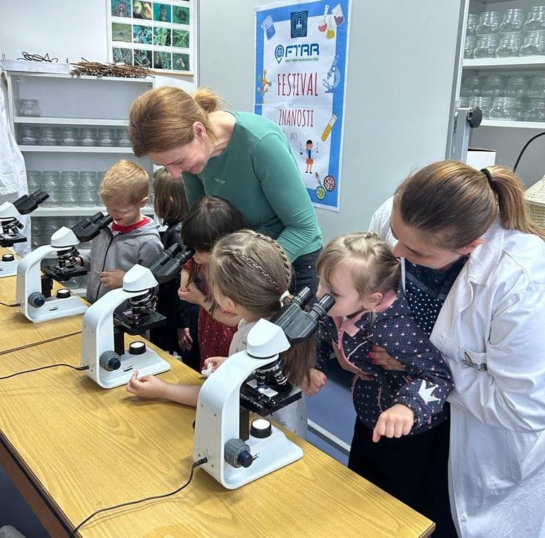 „Nevidljivi svijet prirode“ naziv je radionice pod vodstvom Helene Marčetić dipl.ing. na kojoj su se djeca upoznala s mikroorganizmima koji nas okružuju, koji rastu na voću, povrću, koji se nalaze u zraku, vodi, tlu i na rukama. Promatrali su razne mikroorganizme pod svjetlosnim mikroskopom i podsjetili se zašto je važno redovito prati ruke. Uz voditeljice radionica, u provedbi radionica sudjelovali su i studenti 1. i 2. godine smjera Enogastronomija.