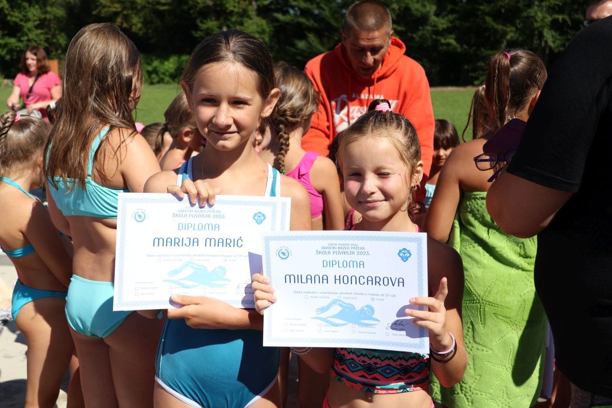 Danas su podijeljene diplome polaznicima ovogodišnje Škole plivanja u organizaciji Požeškog športskog saveza. Škola plivanja službeno je započela 26. lipnja, učitelji su dva tjedna radili s grupom od petnaest djece s intelektualnim teškoćama. Nakon dva odrađena tjedna s njima, krenula je tradicionalna škola plivanja. Ove godine uvedene su i neke promjene kod samih upisa, zbog velikog broja zainteresiranih, a malog kapaciteta bazena i učitelja.