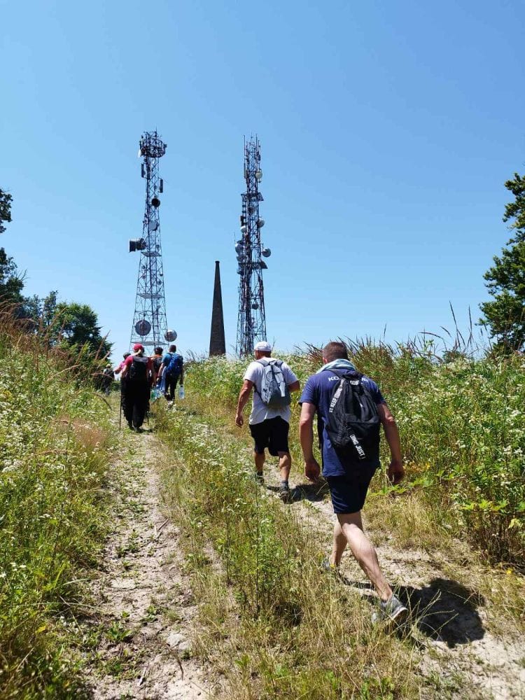 Nakon nekoliko pauza duž staze i mjesta za okrjepu na kojima je domaćin planinarima dopremio osvježenje i uspona od cca 3 sata, planinari su stigli do samog vrha Gradina. Na vrhu se nalazi geodetski toranj i nekoliko odašiljača od kojih je najveći poslužio kao vidikovac i s kojeg se ponosno zavijorila zastava HPD Gojzerica.
