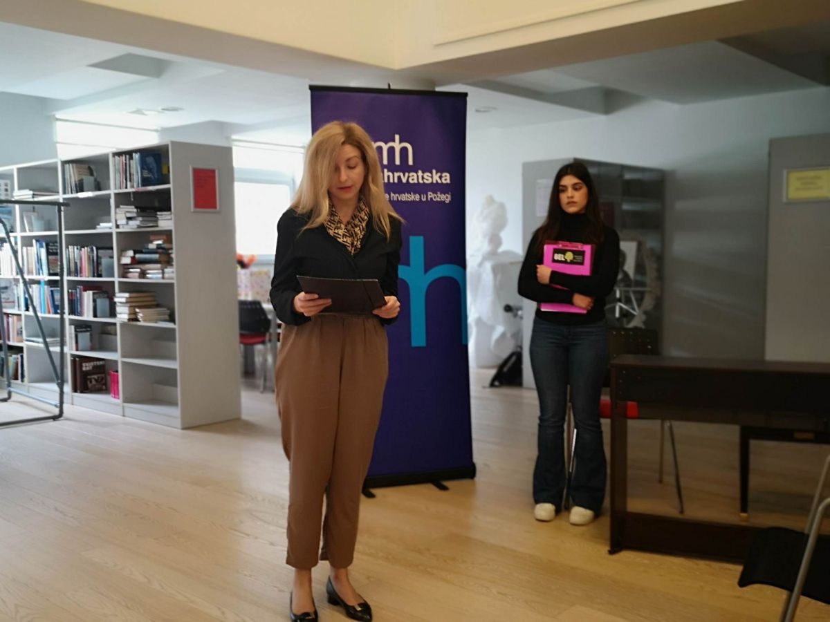 Nazočne je pozdravila Anita Katić, predsjednica Ogranka Matice hrvatske, zahvalila svima na sudjelovanju u natječaju i čestitala najuspješnijima te ravnateljica Gimnazije Požega dr. sc. Vesna Vlašić koja je istaknula kako joj je drago što se svečanost dodjele nagrada održava upravo u Gimnaziji jer su i prvi tajnik Matice hrvatske Vjekoslav Babukić kao i sam Matko Peić bili učenici ove škole.