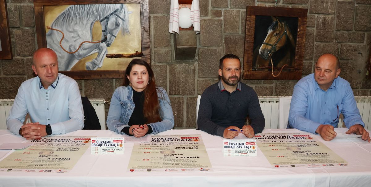 Manifestacija „Čuvajmo običaje zavičaja“ održat će se od 26. do 28. svibnja u Velikoj. Na današnjoj konferenciji za medije program su predstavili Robert Hofman, općinski načelnik Općine Velika, direktor Turističke zajednice Zlatni Papuk Tomislav Galić, zamjenica direktora Kristina Rupert te Bernard Gruić, predsjednik KUD-a Ivan Goran Kovačić.