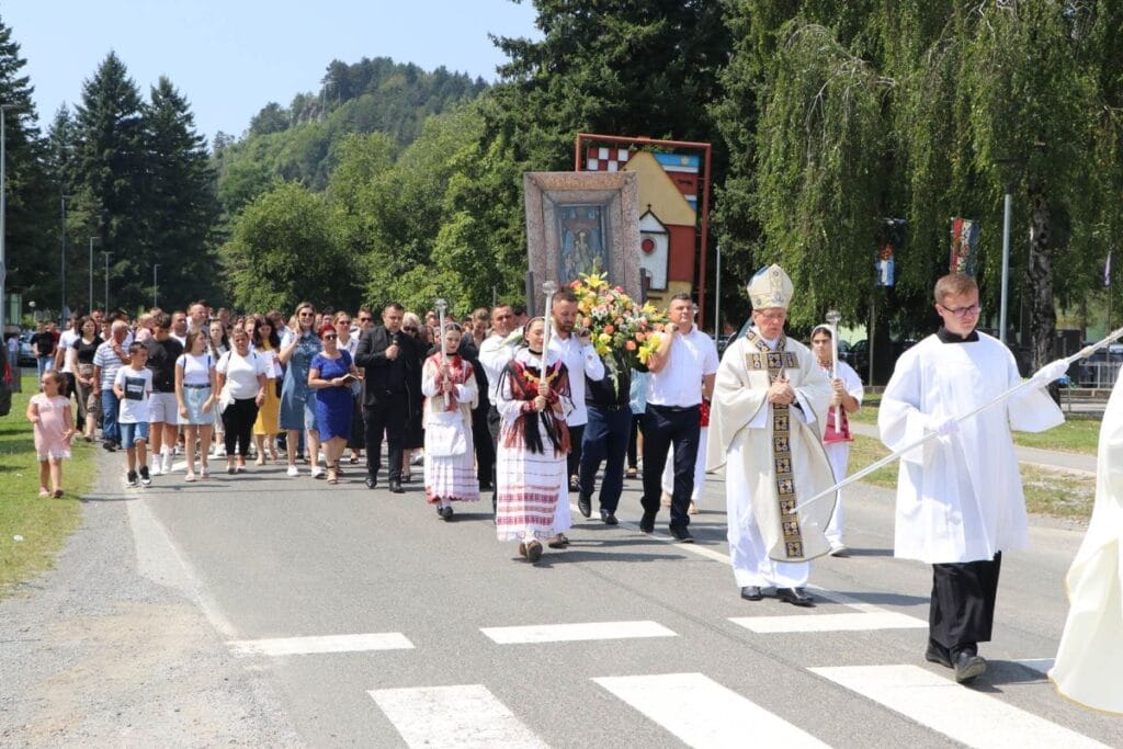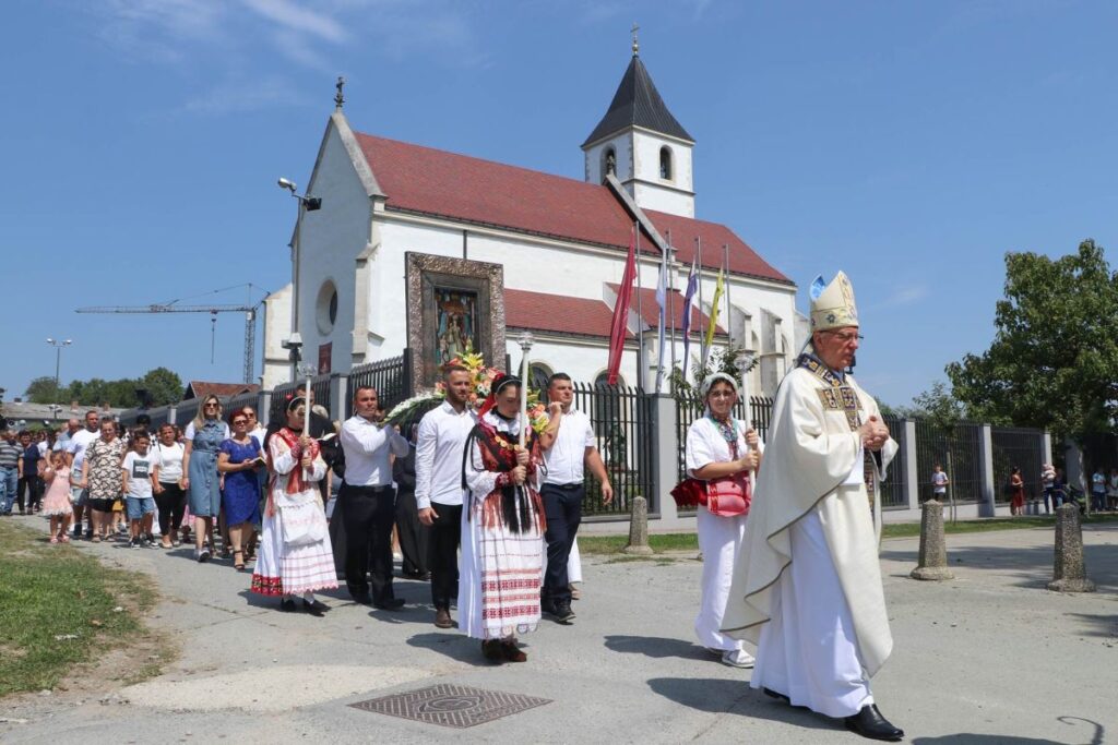 Biskup je spomenuo kako je upravo zbog toga izazovno što su u Hrvatskoj neki gradovi svetkovinu Marijina uznesenja na nebo proglasili sajamskim danom. U vrijeme zakonski određeno da trgovine budu zatvorene, neki su se dosjetili kako će ipak trgovati. Ustvrdivši kako je materijalno potrebno za život, biskup je upozorio da ne bismo smjeli sve procjenjivati samo po načelu gospodarske dobiti, ne obazirući se na to da postoji nešto više i vrjednije od toga. Čovjek je, naime, pozvan ostvarivati se i na drugim razinama svoga postojanja kako ne bi postao siromašan napose u duhovnoj dimenziji. Kazao je hodočasnicima kako njihov dolazak u ovo svetište nije sajamski korak, nego čin vjere u kojem zajedno s Isusovom Majkom slavimo Boga i posvećujemo mu svoje vrijeme. Zahvalio je posebno roditeljima što ne propuštaju tim vrijednostima učiti svoju djecu od malena.