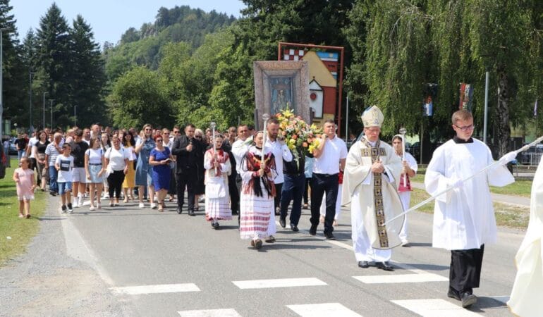 Biskup je spomenuo kako je upravo zbog toga izazovno što su u Hrvatskoj neki gradovi svetkovinu Marijina uznesenja na nebo proglasili sajamskim danom. U vrijeme zakonski određeno da trgovine budu zatvorene, neki su se dosjetili kako će ipak trgovati. Ustvrdivši kako je materijalno potrebno za život, biskup je upozorio da ne bismo smjeli sve procjenjivati samo po načelu gospodarske dobiti, ne obazirući se na to da postoji nešto više i vrjednije od toga. Čovjek je, naime, pozvan ostvarivati se i na drugim razinama svoga postojanja kako ne bi postao siromašan napose u duhovnoj dimenziji. Kazao je hodočasnicima kako njihov dolazak u ovo svetište nije sajamski korak, nego čin vjere u kojem zajedno s Isusovom Majkom slavimo Boga i posvećujemo mu svoje vrijeme. Zahvalio je posebno roditeljima što ne propuštaju tim vrijednostima učiti svoju djecu od malena.