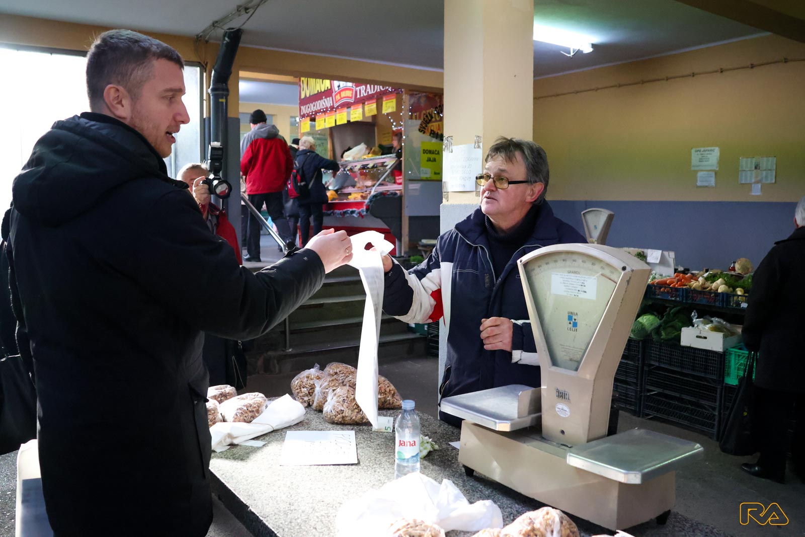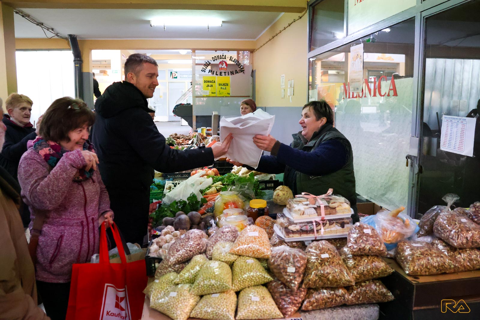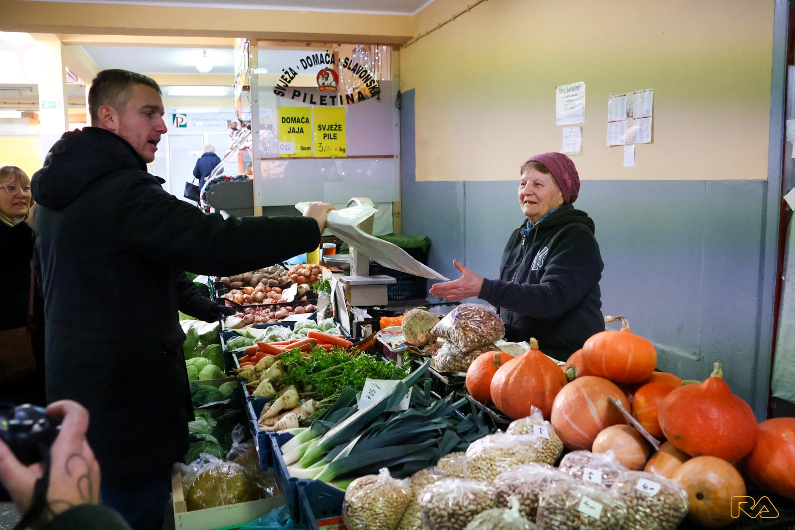 Posjet Požeškoj tržnici i darivanje Marije koja tamo prodaje 50 godina