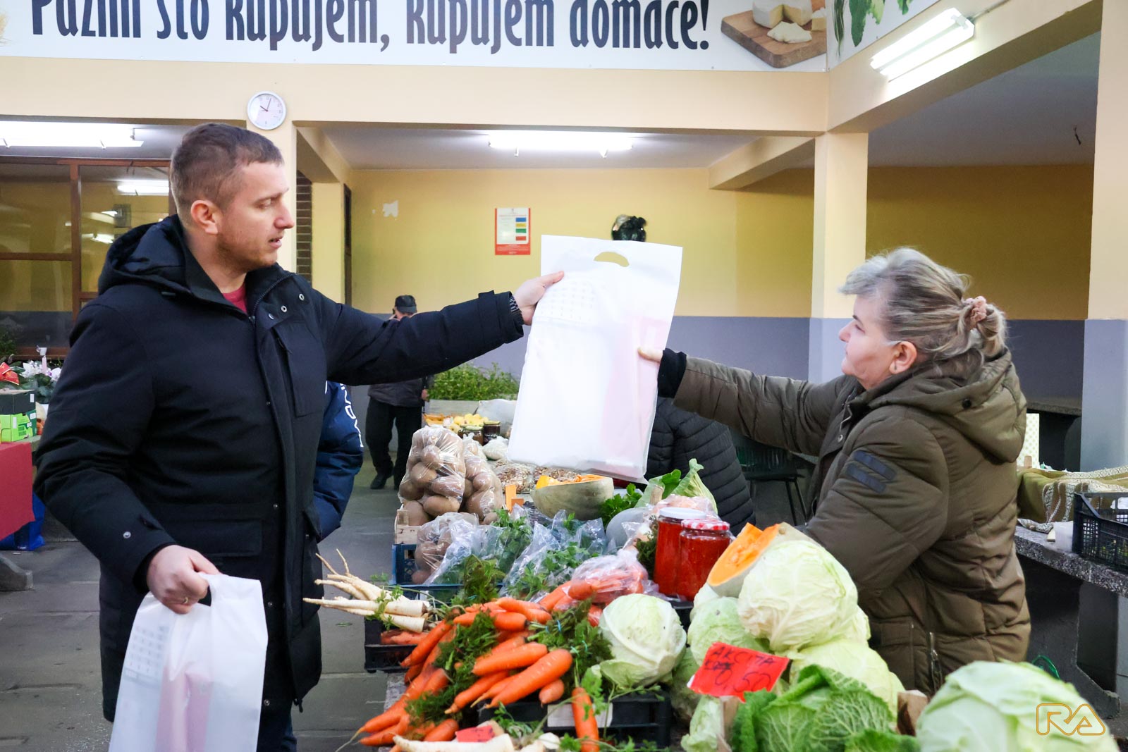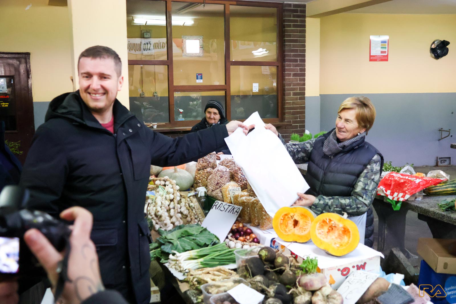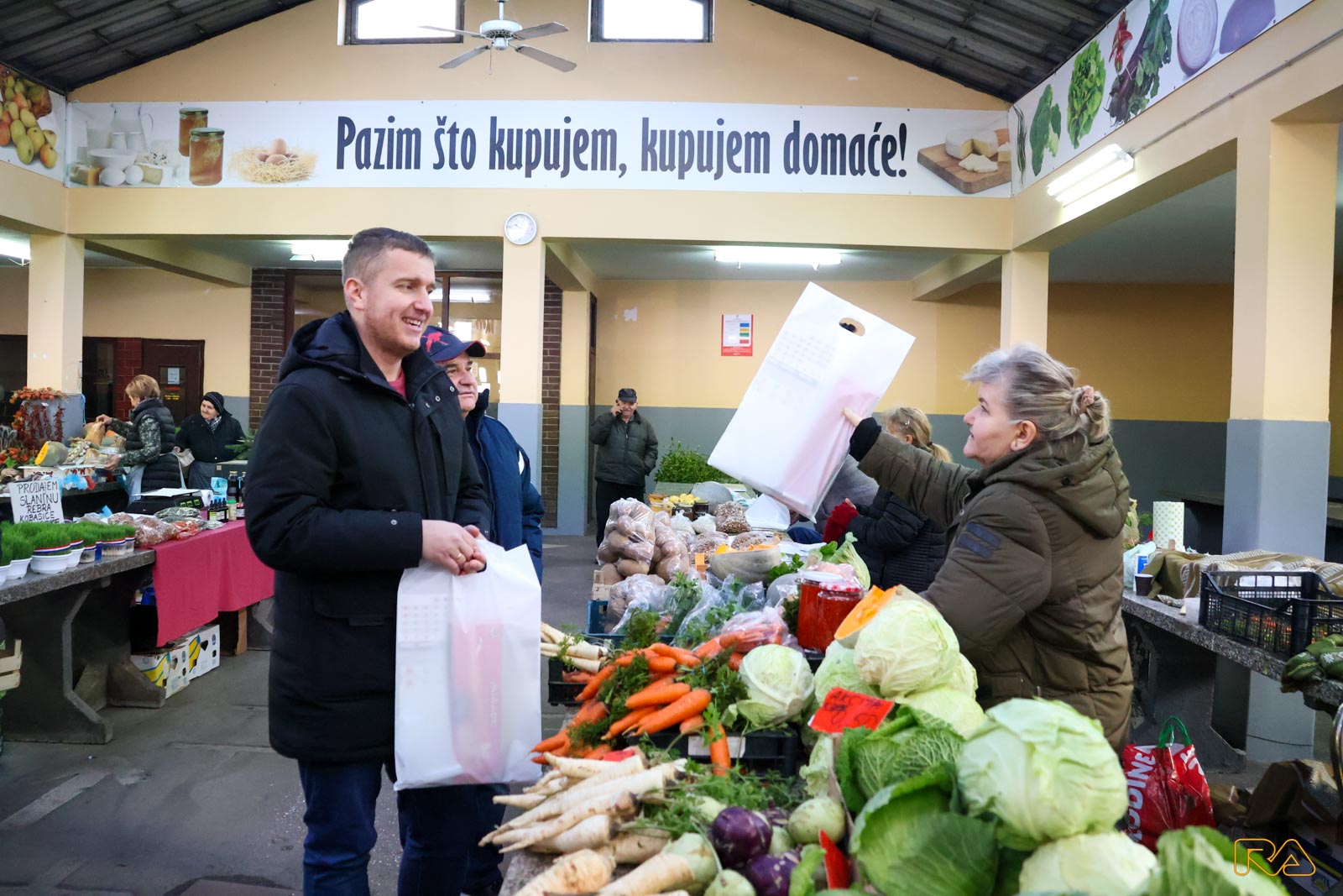 Posjet Požeškoj tržnici i darivanje Marije koja tamo prodaje 50 godina