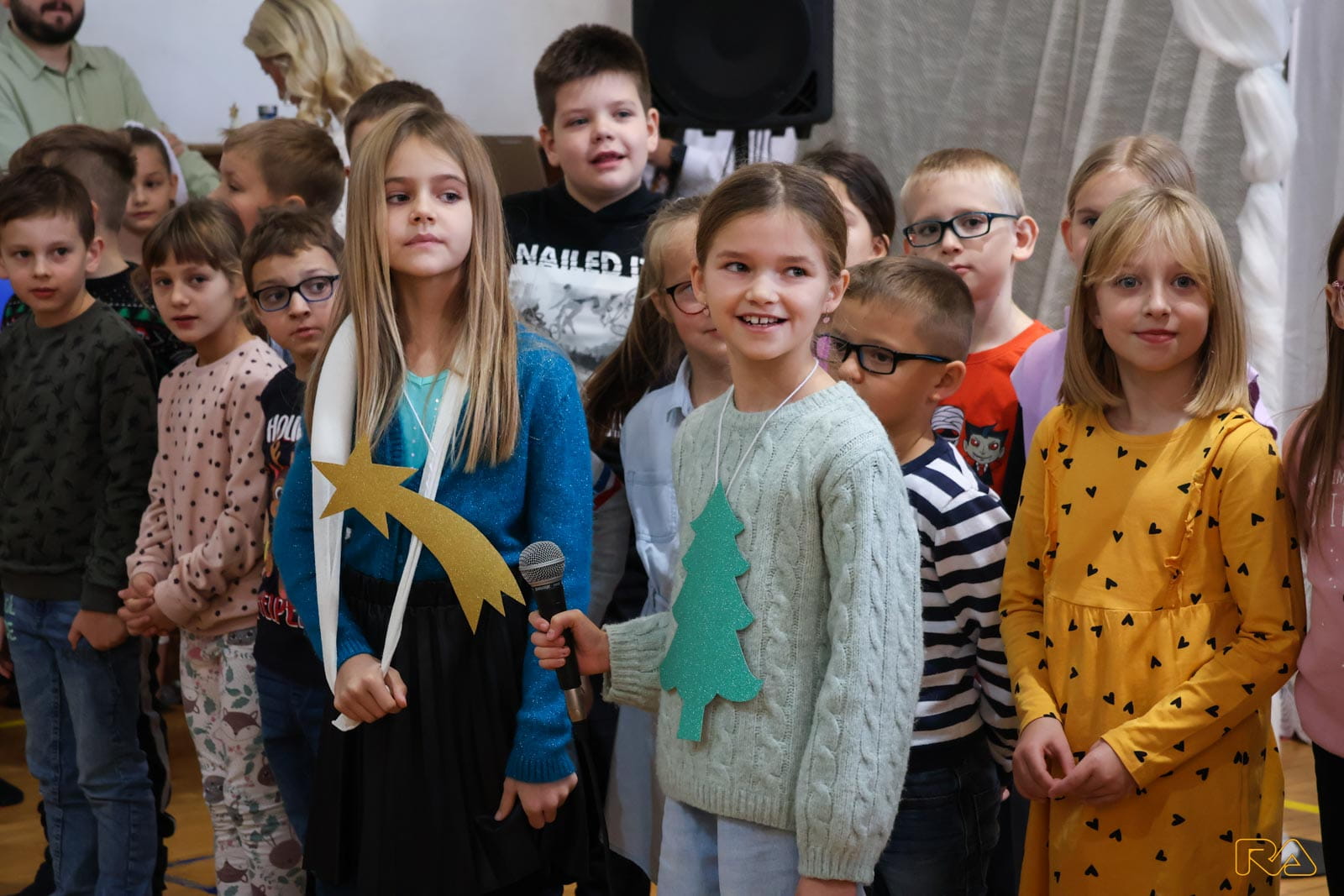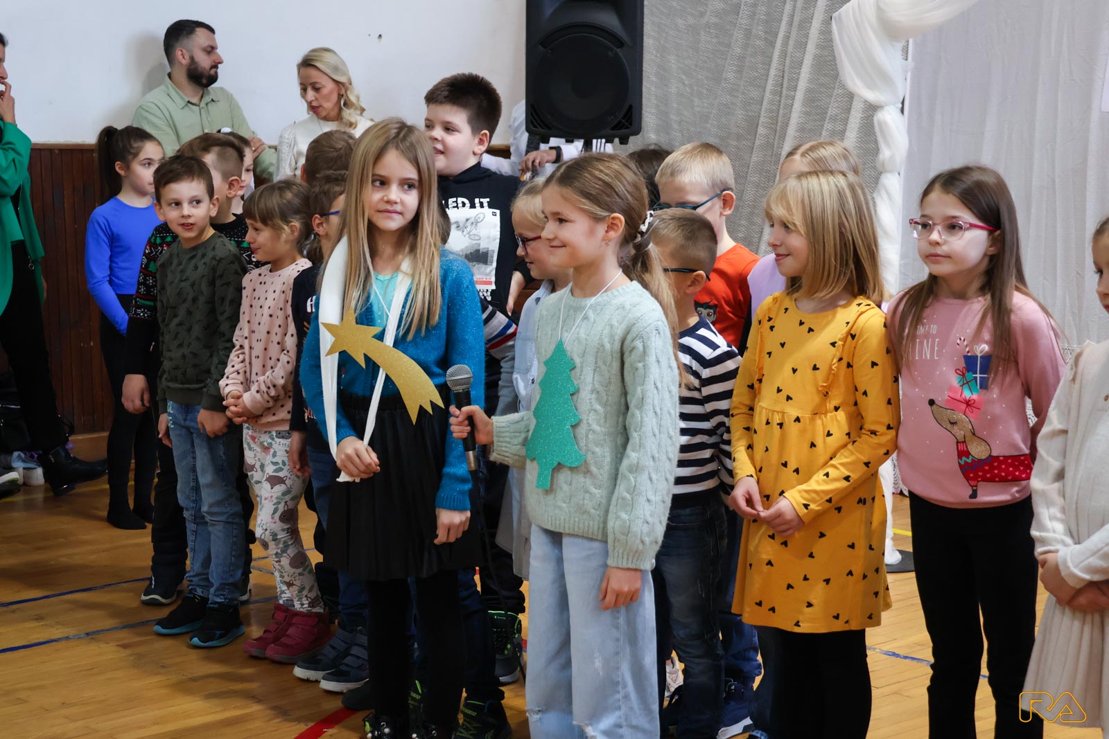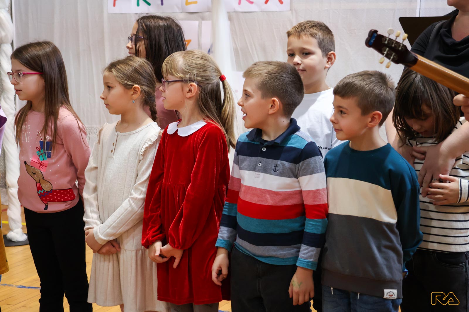 Prigodnim riječima mališane i sve okupljene pozdravila je i pročelnica Upravnog odjela za društvene djelatnosti Grada Požege Maja Petrović, a zatim su uslijedili nastupi učenica posebnog odjela Klare, Samante i Sare s pjesmom Cimet i čaj te učenika 2.a razreda s igrokazom i pjesmom uz tamburašku pratnju nastavnika Nenada Kovačevića. Također su nastupile plesačice Umjetničke organizacije Plesna radionica Ilijane Lončar, inače učenice Osnovne škole Julija Kempfa Lara i Karla, a u glazbenom dijelu programa predstavili su se učenici Glazbene škole Požega, odnosno tamburaški bend uz mentora Sašu Botičkog.