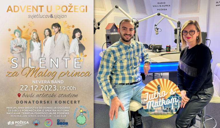 Očekuje nas jedinstvena glazbena čarolija u srcu grada Požege! Naime, Turistička zajednica Grada Požege i Udruga Mali princ s radošću su najavili spektakularan donatorski koncert jedne od najomiljenijih grupa našeg vremena – Silente. Ovo glazbeno putovanje ima poseban cilj, pružiti podršku Udruzi Mali princ, čije se hvalevrijedno djelovanje osjeća u svakom koraku. Kako je došlo do ostvarenja ove lijepe priče i gdje nabaviti donatorske ulaznice za koncert rekla je predsjednica Udruge Mali princ Danijela Franjetić Medilović prilikom gostovanja u emisiji „Jutro s Matkom“.
