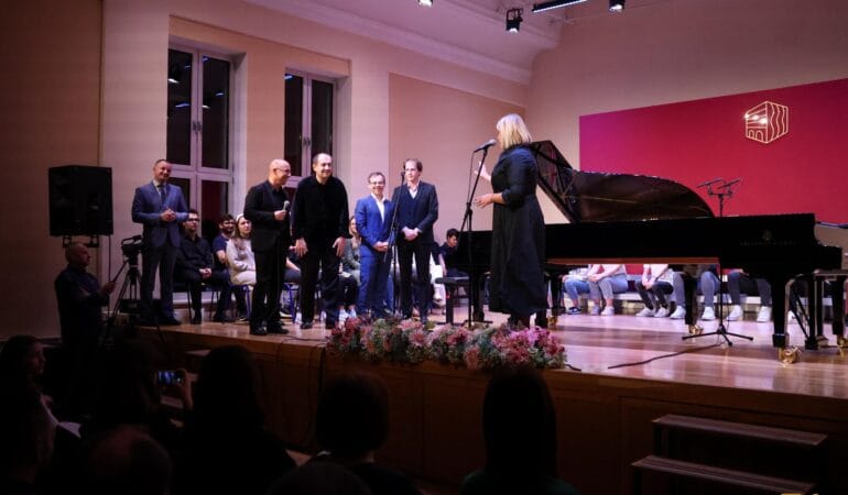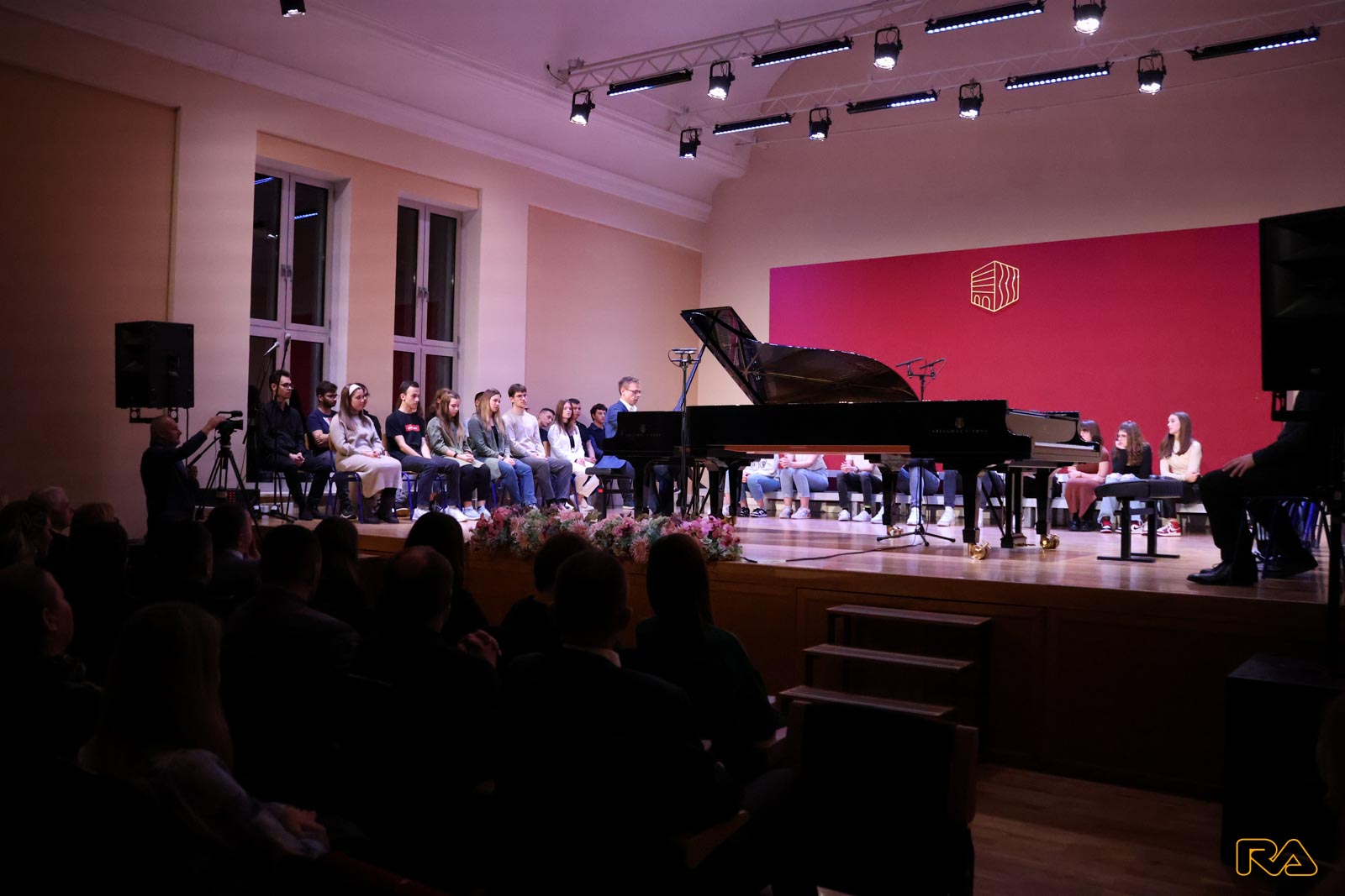 Ravnatelj Kovačević je zatim pozvao Zrinku Turalija Kurtak, urednicu vijesti iz kulture Hrvatske radiotelevizije, da detaljnije predstavi četiri pijanista koji će sudjelovati u inauguraciji klavira. Ona je istaknula kako je ravnatelj za ovaj koncert okupio jednu reprezentaciju iskustva i mladosti, te kako nije lako okupiti četiri vrsna pijanista u isto vrijeme, za jedan ovakav koncert. Pijanisti Srđan Čaldarović, Petar Klasan, Ivan Krpan i Konstantin Krasnitski su jedva dočekali pokazati publici što su pripremili, a svi koji su sinoć bili u Koncertnoj dvorani, moći će se složiti kako će ovaj koncert ostati upisan u mnoga lijepa sjećanja po svojoj posebnosti.