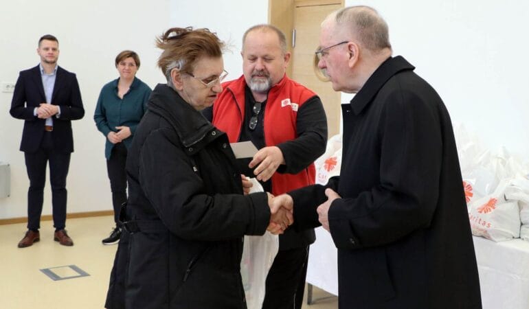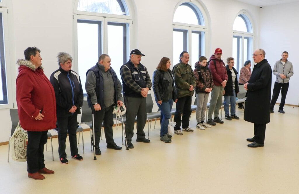 Susret biskupa Antuna na Veliku subotu s Caritasovim djelatnicima i primateljima pomoći
