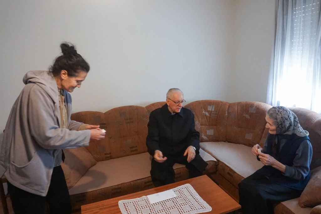 Nakon toga biskup se u pratnji tajnika Mateja Silukovića uputio u posjet nekolicini obitelji u njihovim požeškim domovima, koje mjesečno primaju pomoć iz „Caritasove riznice dobrote“ i svakodnevno objed iz Caritasove kuhinje. U razgovoru se upoznao s njihovim problemima i poteškoćama, kazavši kako im je svojim dolaskom želio posvjedočiti blizinu i poštovanje, koje im Caritas očituje svojim svakodnevnim služenjem. Uz čestitku za Uskrs primili su i prigodni poklon te novčani dar.