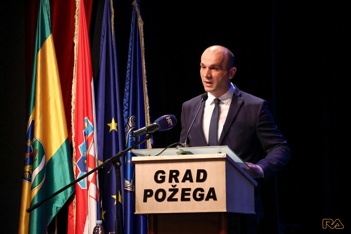 “Priveli smo kraju projekte vrijedne 35 milijuna eura i započeli realizaciju projekata vrijednih gotovo 50 milijuna eura. Sve to iz europskih i dijelom nacionalnih sredstava uz brojne manje projekte financirane iz gradskog proračuna, a u pripremi su i drugi projekti važni za razvoj ovog grada. Zahvaljujući odličnoj suradnji s Požeško-slavonskom županijom, u pripremi su i važni zajednički projekti koji će dodatno pridonijeti rješavanju i izgradnji sadržaja koji gradu nedostaju. Posebno pri tom treba istaknuti radost i zadovoljstvo koje je kod građana, posebno poduzetnika, izazvalo pokretanje postupka izgradnje brze i upola kraće ceste koja će Požegu spojiti s autoputom, na čemu vam gospodine predsjedniče najtoplije zahvaljujem u ime svih građana.“
