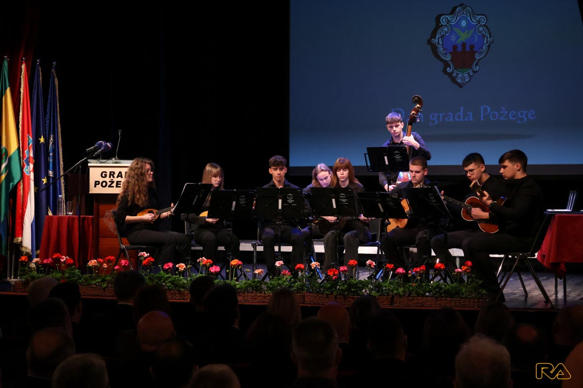 Titulu počasnog građanina zaslužio je Tin Kolumbić, a koju je preuzela njegova kćer Milica Kolumbić. Željko Balog i Georgije Diklić dobitnici su Nagrade za životno djelo, Nada Ušurić dobitnica je Povelje humanosti, Marini Mihelčić i Goranu Matijeviću dodijeljena je Godišnja nagrada. Dobrovoljno vatrogasno društvo Požega zaslužilo je Kolektivnu nagradu. U kulturno-glazbenom dijelu svečane sjednice sudjelovali su učenici i nastavnici Glazbene škole Požega.