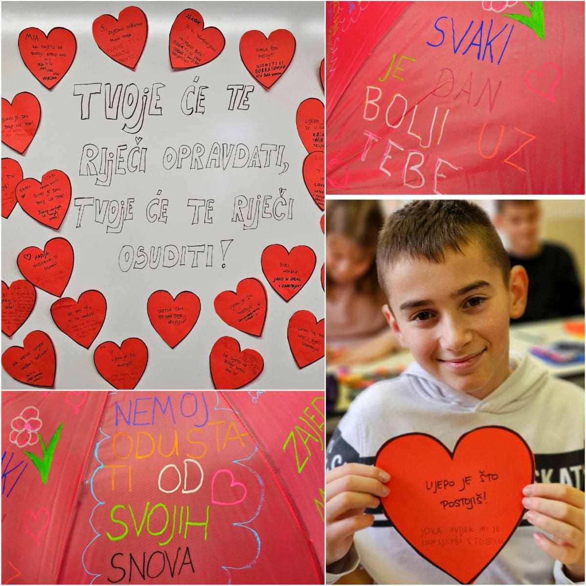 Nakon različitih kreativnih radionica prilagođenih uzrastu, zaključili su kako je govor most između nas i drugih bića, između nas i Boga. On je odraz naše nutrine i pokazuje kakvi smo mi zapravo. Učenici su u paru izabrali poticajne misli, uputili ih jedni drugima, te one izabrane napisali na kišobrane. Ovi će ih kišobrani podsjećati na pozitivnu komunikaciju jednih prema drugima. Donosimo svjetlo svojim riječima, mislima i djelima.