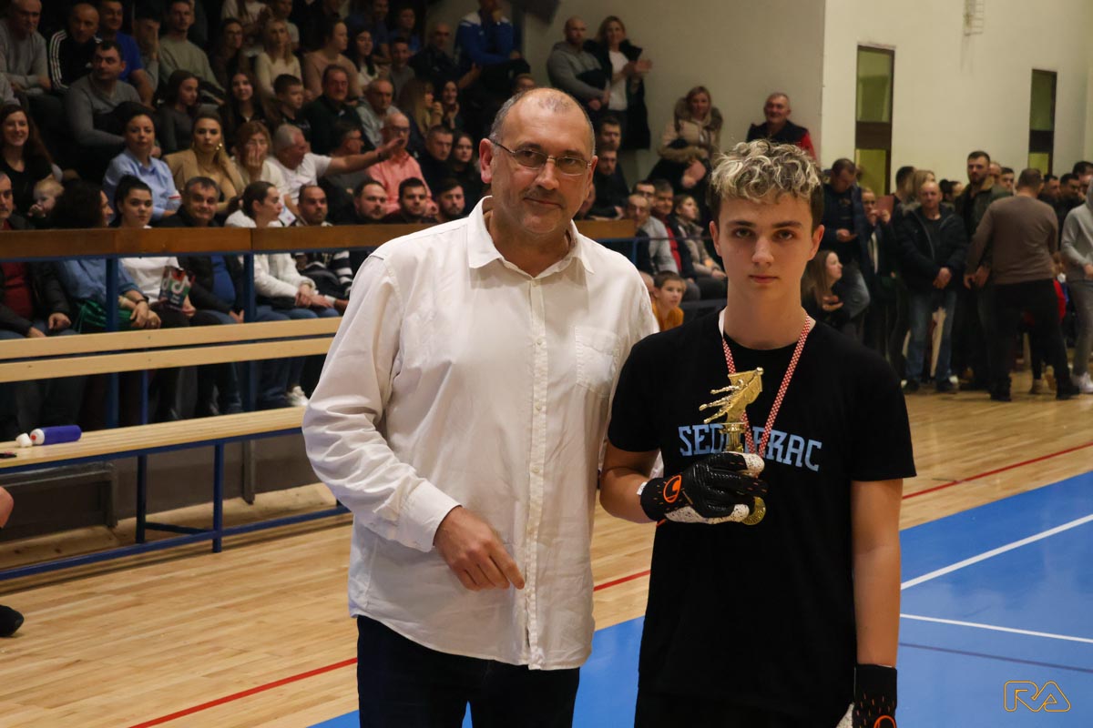 Nakon pionira na parket su u 20,15 sati u finalu kadetskog turnira istrčali igrači MNK Autodijelovi Barišić i ekipa pod nazivom Sedmerac. Već u prvoj minuti Mihael Kapraljević doveo je svoj Sedmerac u vodstvo od 0:1, a konačnih 0:2 postavio je Vito Papac u 24. minuti. “Barišići” su u zapisniku imali 11 igrača, a Sedmerac je imao 7 kao i na svakoj svojoj utakmici na ovom turniru.