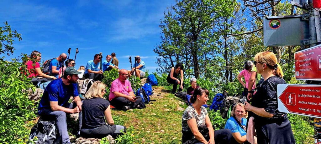 Skriveni u tunelu od vegetacije i krošnji stabala, lakše su podnosili žestinu sunca koje je pržilo tijekom cijelog dana. Popevši se na brdo Pliš, uživali su u predivnim pogledima prema Velikoj i ostatku nam ”Zlatne doline”. Nakon kraćeg odmora nastavili su botaničkom stazom prema skloništu Mališćak.