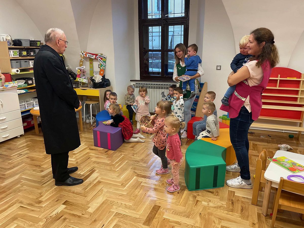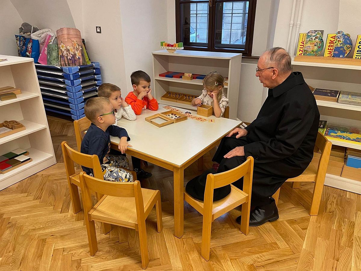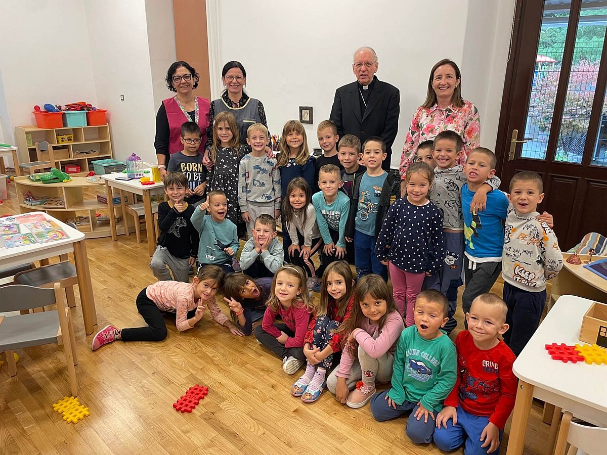 U pratnji upravitelja Odgojno-obrazovnog centra Požeške biskupije Ivice Žuljevića, koji je vodio radove uređenja, te ravnateljice Darije Poleti požeški biskup emeritus Antun pohodio je Vrtić na dan njegova useljenja u obnovljenu zgradu te je njegovim djelatnicima, roditeljima i djeci izrazio radost zbog poboljšanih uvjeta djelovanja i pružio potporu u novim okolnostima.