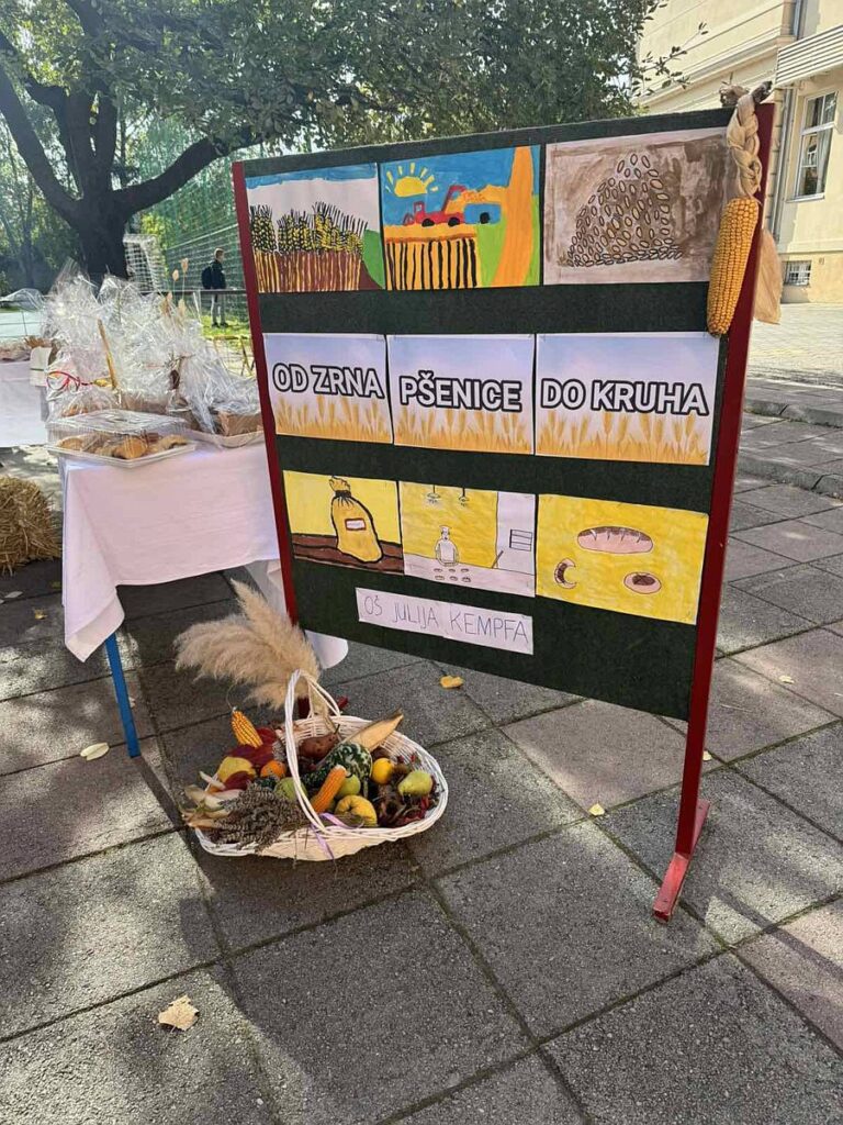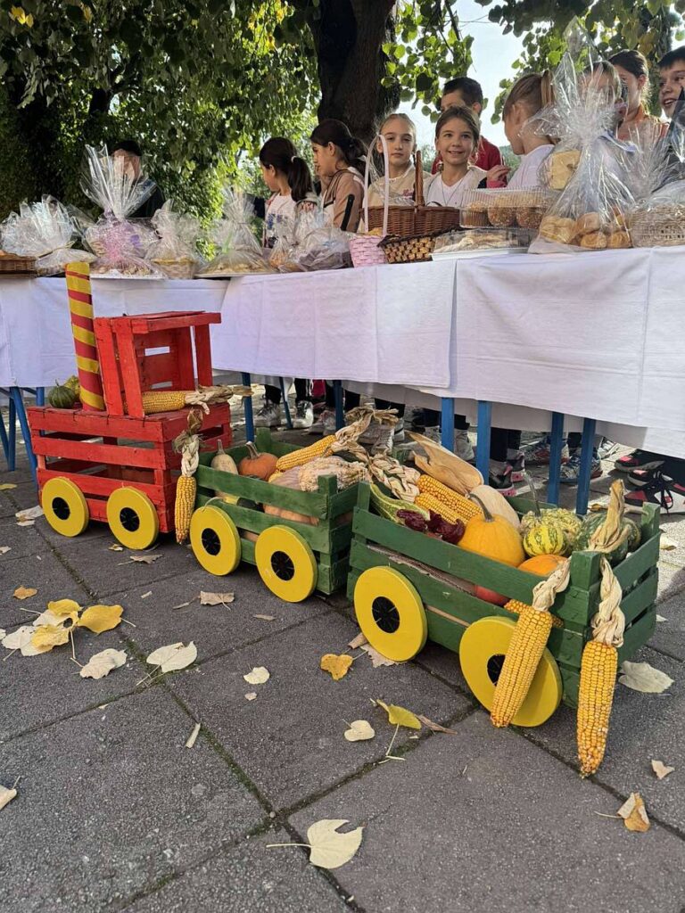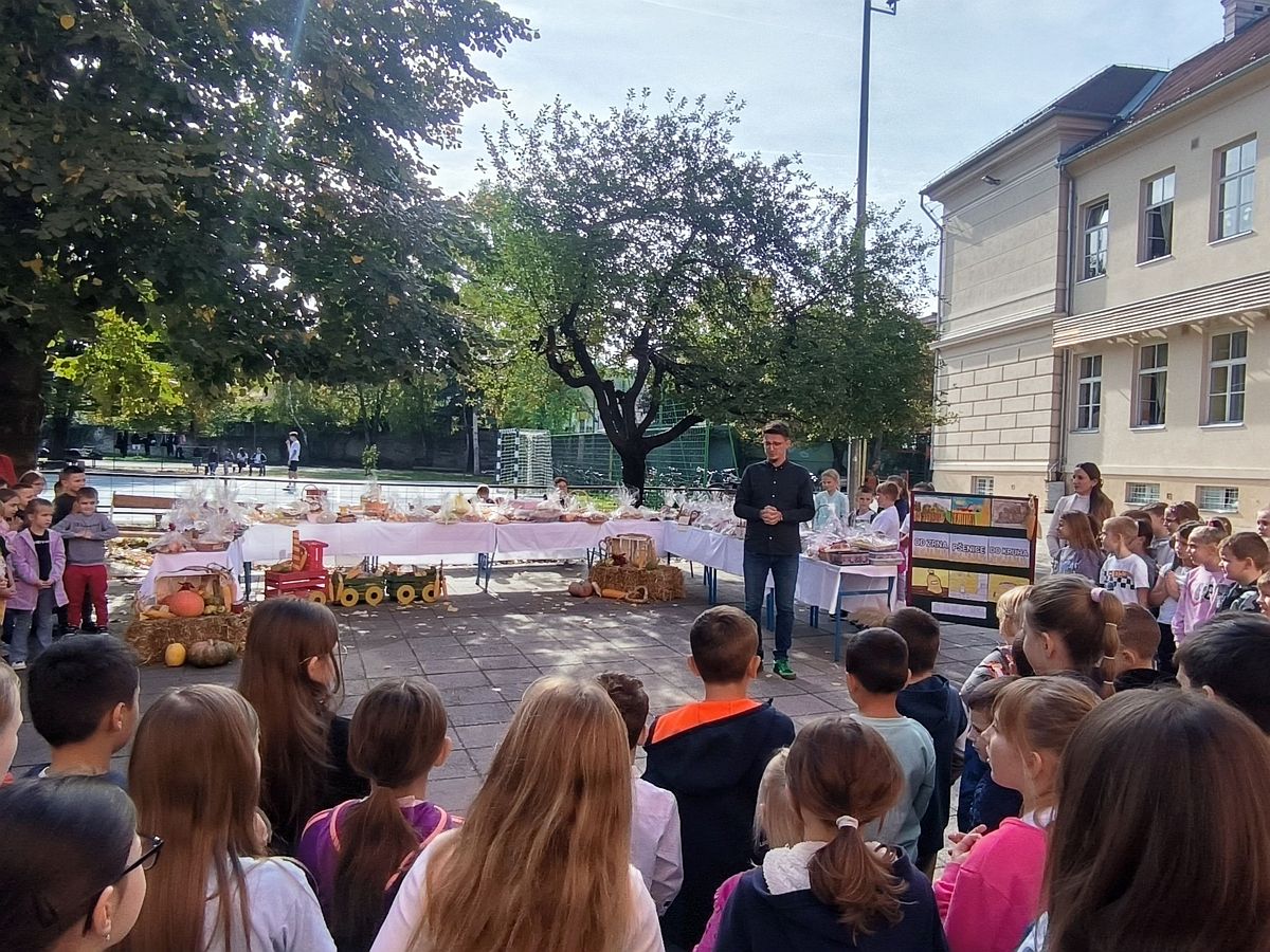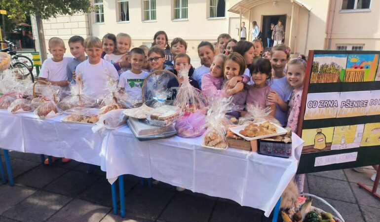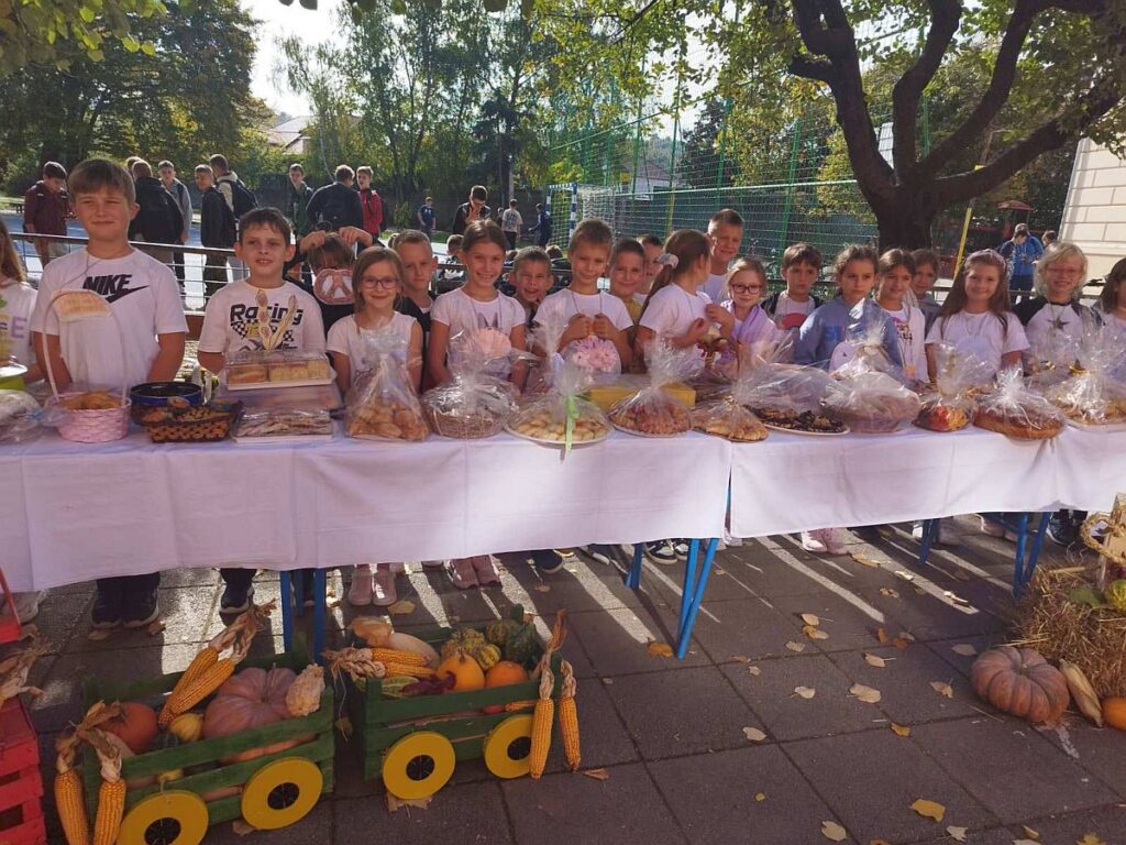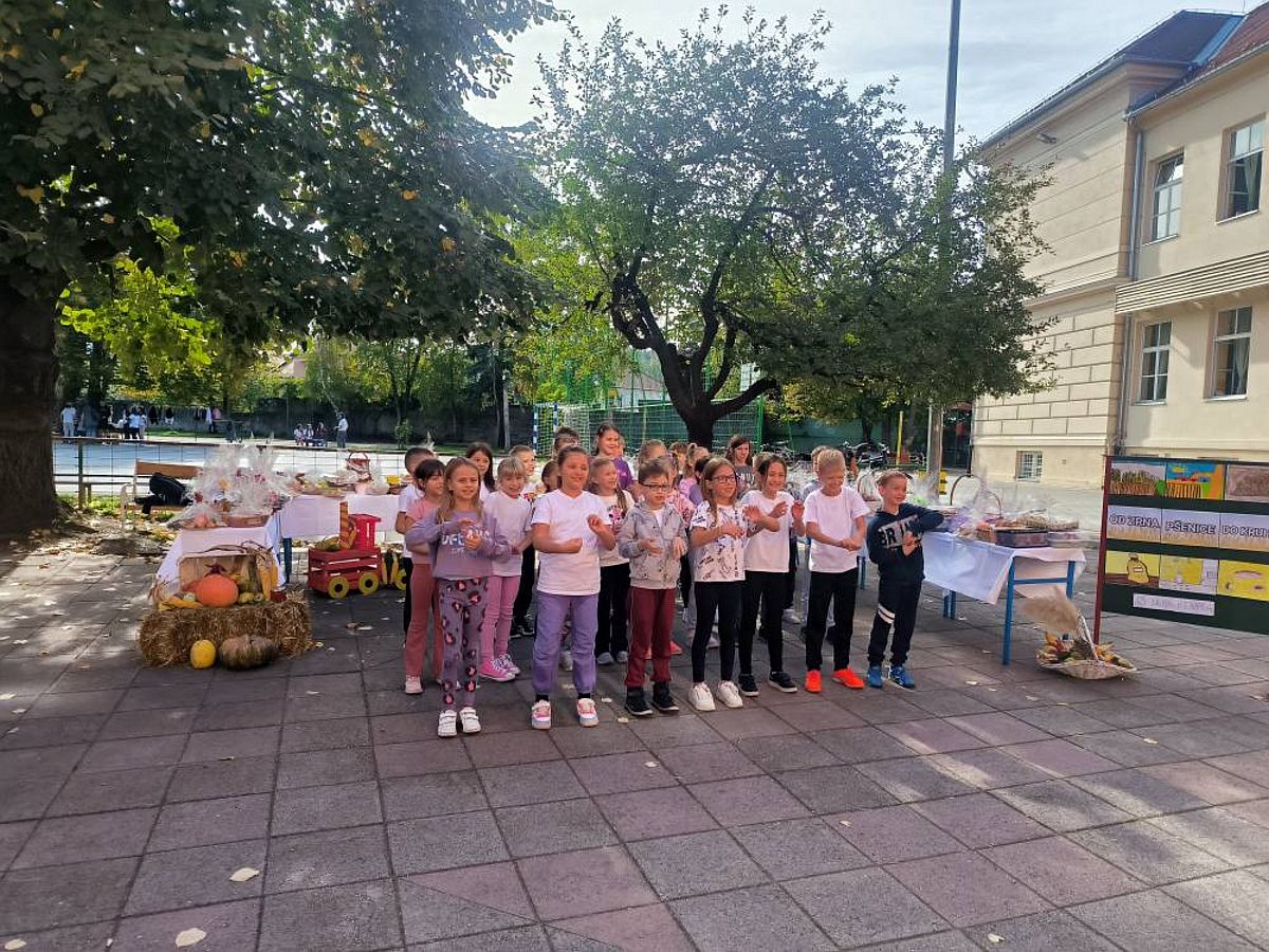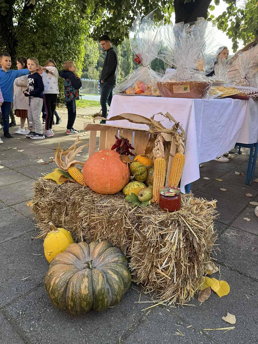 Vrijedne i brižne ruke učenika, roditelja i učitelja pripremile su razne vrsta peciva, kolača i kruha koje su izložili na ukrašenim stolovima s jesenskim plodovima. Nakon priredbe koju su pripremili najmlađi učenici i blagoslova vjeroučitelja Josipa, učenici su blagovali hranu koju su donijeli. Zajedno su se tako podsjetili koliko je važno biti zahvalan za sve ono što nam priroda daje te da ju trebamo cijeniti i čuvati.