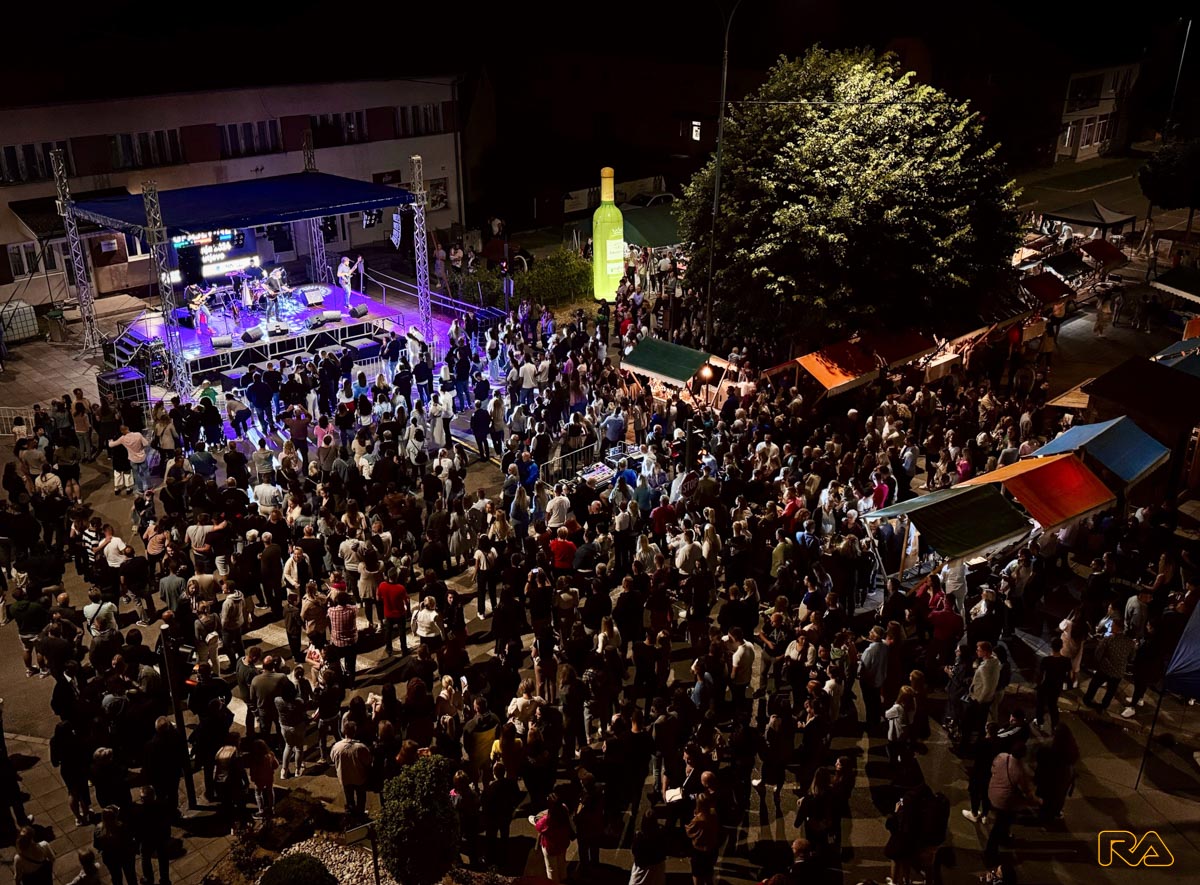 S Vinkomira se spuštamo na Trg graševine gdje je održano centralno događanje. Uz eno-gastro sajam i štandove vinara, posjetitelji su uživali u nastupu Gradske glazbe Kutjevo i Tamburaškog sastava Zlatna doline.