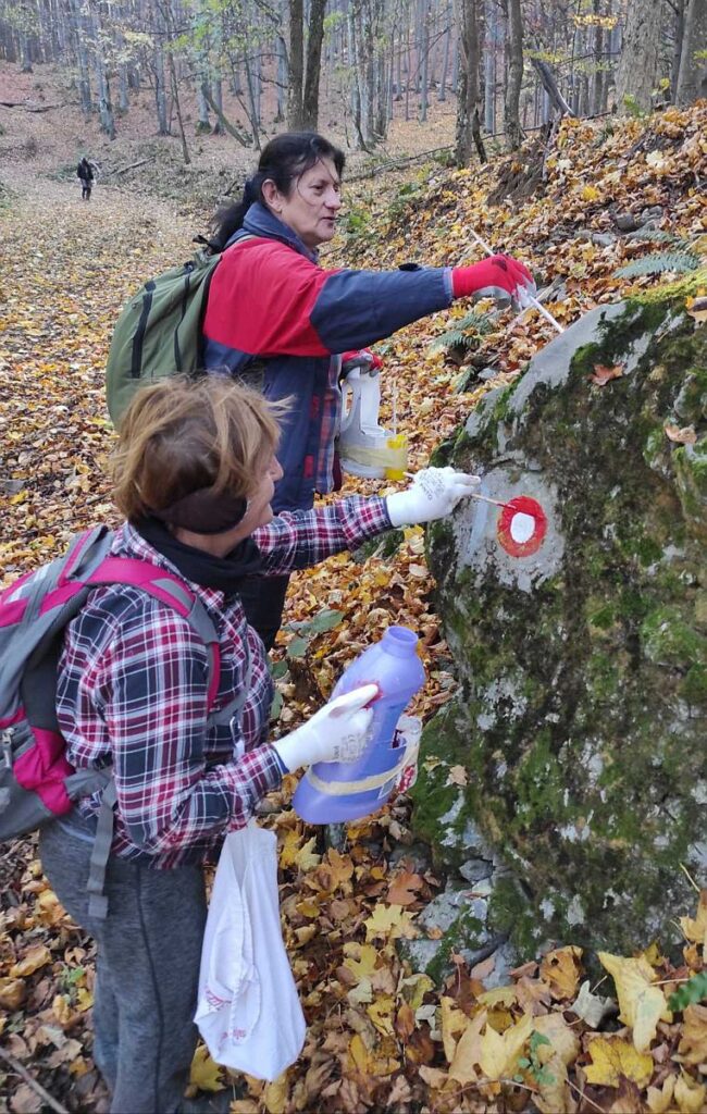 Topao jesenski dan, uz blagi vjetar koji brzo suši boju obnovljenih planinarskih oznaka, bio je idealan za akciju markacističke sekcije Hrvatskog planinarskog društva Sokolovac Požega.