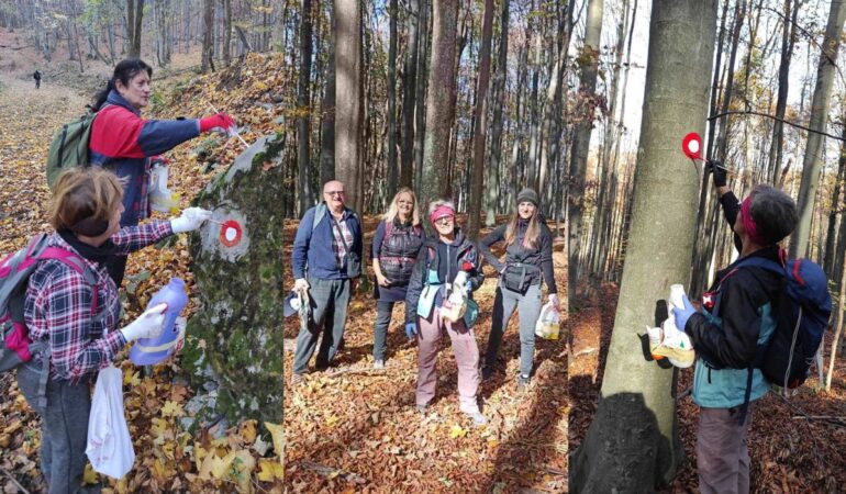 Topao jesenski dan, uz blagi vjetar koji brzo suši boju obnovljenih planinarskih oznaka, bio je idealan za akciju markacističke sekcije Hrvatskog planinarskog društva Sokolovac Požega.
