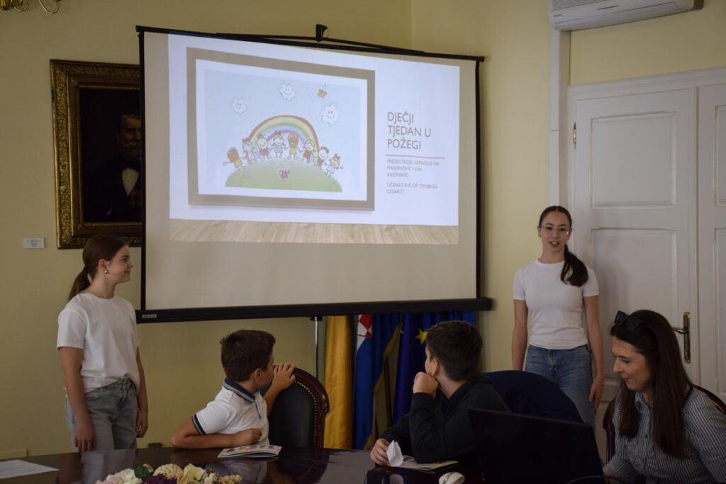 Na početku sjednice, učenice osmog razreda Osnovne škole Dobriša Cesarić, Iva Marijanović i Eva Krizmanić, putem prezentacije, upoznale su sve prisutne o aktivnostima Društva Naša djeca, što je Dječji tjedan i zašto ga obilježavamo.