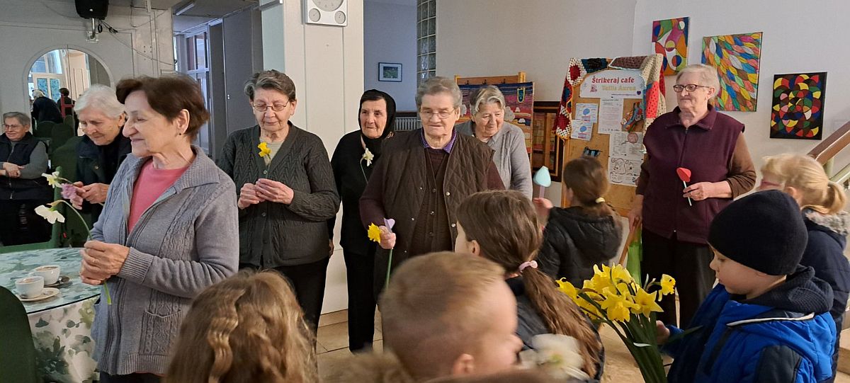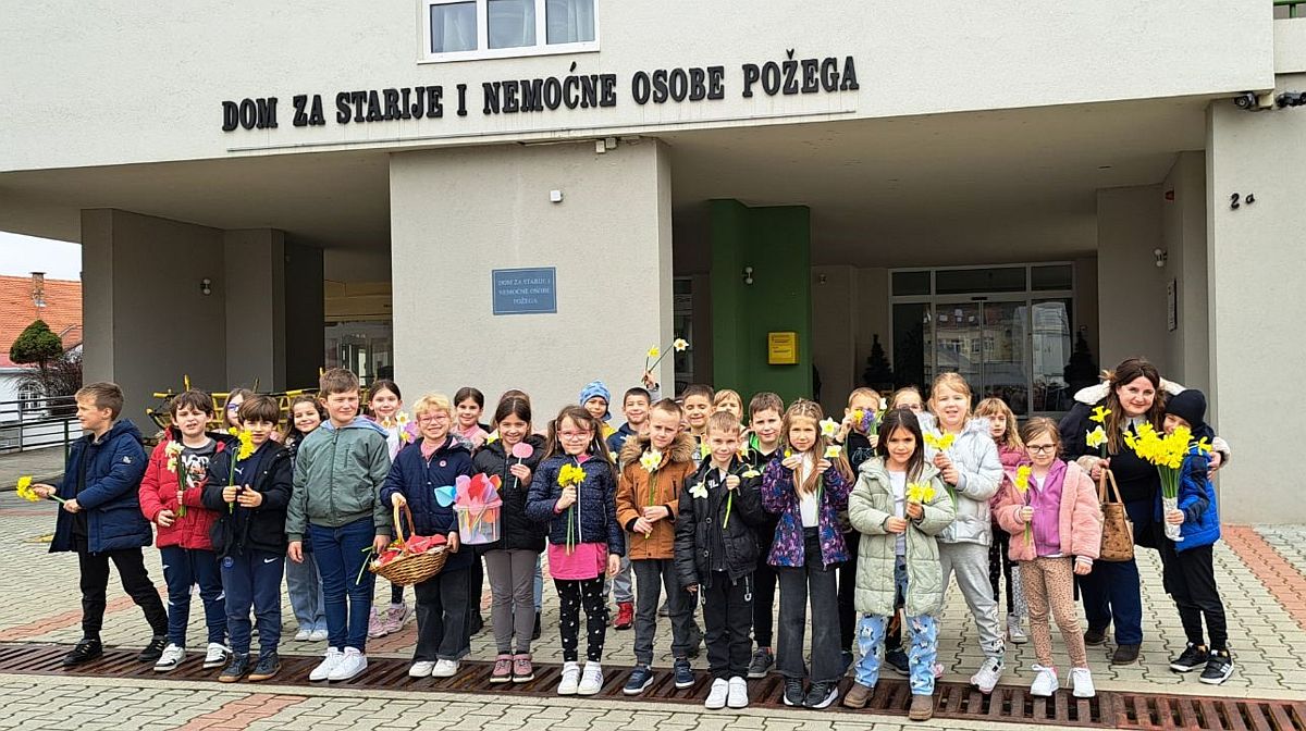 Povodom Svjetskog dana starijih osoba i Međunarodnog dana žena, učenici produženoga boravka Osnovne škole Julija Kempfa Požega su s učiteljicom Valentinom Legac i knjižničarkom Ivanom Jelušić posjetili su Dom umirovljenika u Požegi.