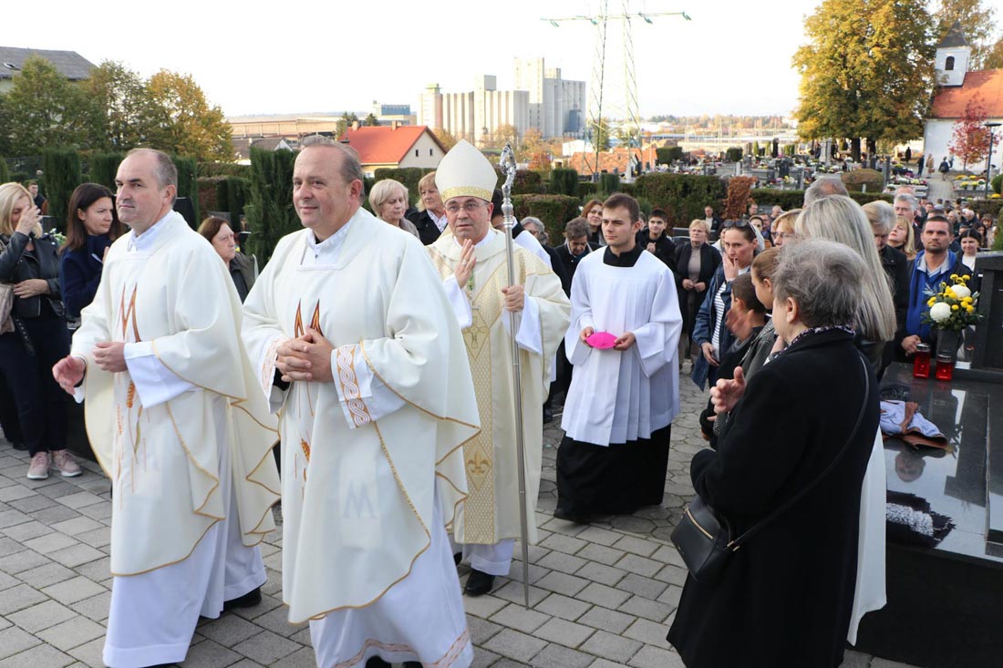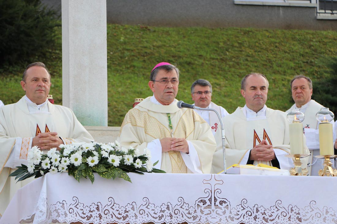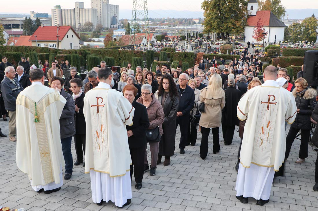 Pozdravljajući sudionike slavlja, biskup je kazao kako je svetkovina Svih Svetih spomen na kanonizirane, ali i neproglašene svece Crkve. Ustvrdivši kako je Isus Krist onaj koji okuplja zajednicu Crkve, poručio je kako su vjernici na ovome mjestu  na poseban način ujedinjeni i sa svojim pokojnicima. „Spominjemo se naših dragih pokojnika koji su otišli s ovoga svijeta te počivaju ne samo na ovom groblju, nego i na drugim mjestima. Vjerujemo da su u zajedništvu sa svecima i s Kristom Kraljem u vječnoj slavi. Želimo da ovo naše zajedništvo u otajstvu presvete euharistije i u zajedništvu nebeske Crkve bude znak naše ljubavi i prema našim preminulima kojih se posebno ovih dana spominjemo“, kazao je biskup te pozvao prisutne da se u svojim molitvama sjete i onih kojih se nitko ne spominje, kako bi svi bili dionici Kristove nebeske slave.