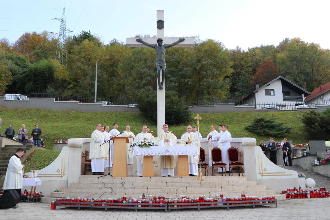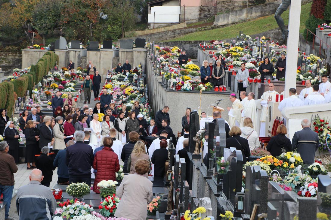 U homiliji biskup je kazao kako naviještena čitanja o svetkovini Svih Svetih govore o otajstvu svetosti. Osvrnuo se potom na prvo čitanje iz Knjige otkrivenja u kojem sv. Ivan opisuje nebeski Jeruzalem u kojem je Bog na svom prijestolju, a klanjaju mu se sveci u zajedništvu s anđelima. „Među njima prepoznajemo i promatramo svece iz svih naroda, plemena i jezika. Nije li naša želja da svi koji na ovom groblju počivaju budu dionici iste slave? Svijeće i cvijeće koje smo donijeli na grobove svojih pokojnika, znak su ljubavi i zahvalnosti za sve ono što su oni posvjedočili svojim životom, djelima, žrtvom i predanjem za obitelj, za bližnje i za Boga. Ovo euharistijsko slavlje kao naša zajednička molitva najveći je dar koji možemo prikazati Bogu za naše pokojnike. Ona vrijedi više nego sve svijeće i cvijeće na ovom groblju jer u njoj sam Krist prinosi nebeskom Ocu sve naše molitve i prošnje za naše pokojne. Naša je želja da i oni budu dionici nebeskog Jeruzalema, vječne slave te da gledaju slavu Božju o kojoj sv. Ivan govori u drugom čitanju (usp. 1Iv 3, 1-3).“