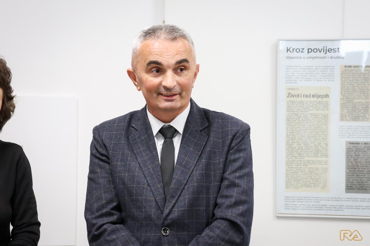 “Kroz ovu izložbu ćete vidjeti jedan mali segment našeg života, načina djelovanja i rada. Davne 1954. godine Udruga je osnovana i kroz nju je prošlo petstotinjak članova. Bilo je tu teških dana, nekada su sljepoću smatrali sramotom, minorizirali je i stavljali nas po strani. Našom borbom smo doveli ovu udrugu do 70 godina rada, čime se ponosimo. Život slijepe osobe je težak, ali nije nemoguć i jednako je kvalitetan kao i kod svakog drugog “zdravog” čovjeka. Uz vašu pomoć možemo jednako kvalitetno živjeti, možda će naš rad biti malo sporiji i drugačiji, ali će biti jednako efikasan kao i kod zdravog čovjeka. Ne tražimo nikakve posebne tretmane, želimo samo da budemo jednaki i jednakopravni u svakom pogledu.” – rekao je Grgić.
