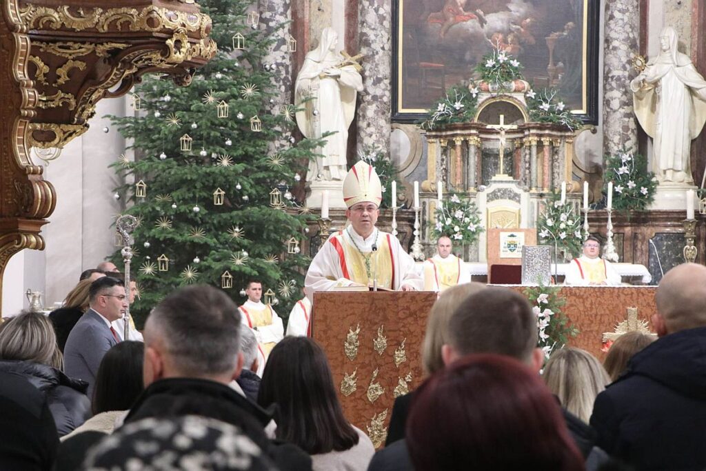 Na početku homilije biskup je kazao kako u Božiću slavimo otajstvo spasenja koje je Bog darovao i u koje nas uvodi po Isusovom rođenju. „Otajstvo spasenja i svoje prisutnosti Bog je ostvarivao kroz cijelu povijest spasenja. Današnja riječ Božja želi nas na to podsjetiti i potaknuti da s vjerom, osjećajima, razumom i srcem uđemo u to otajstvo Božje objave, darivanja i dolaska u povijest spasenja i u naše živote.“ Osvrnuo se zatim na prvo čitanje iz Knjige proroka Izaije koji izraelskom narodu u nevolji i tragediji navješćuje radost, mir i bolju budućnost „Prorok narodu u ropstvu i tuđini govori o radosti i ljepoti koju će Bog ostvariti. Sigurno da su se mnogi od njegovih slušatelja čudili se onome što po Božjem nadahnuću naviješta. Možda se slično događa i nama kada smo u teškoj životnoj stvarnosti, kad ne vidimo izlaz iz svojih poteškoća. Tada nam je neobično da nam netko govori kako će biti bolje i da se treba osloniti na Boga i ne gubiti vjeru. Mnogi se nažalost u takvim stvarnostima udalje od Boga jer očekuju da Bog treba odmah djelovati. Takvi smo mi ljudi. Mi smo naučili da se sve što danas zamislimo, da se treba odmah ostvariti, a kod Boga je drugačije, on drugačije djeluje. Prorok Izaija nije dočekao ono što je naviještao, a nisu ni drugi proroci“, zaključio je biskup.