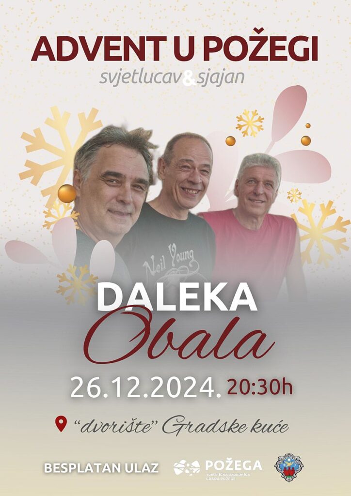 Tako ćemo u četvrtak, 26. prosinca na Stjepanovo pjevati uz Daleku Obalu. U petak, 27. prosinca zabavljat će nas Acoustic duo Teo Kifer & Marko Marić. U subotu, 28. prosinca plesat ćemo uz Z++ i njegove hitove.