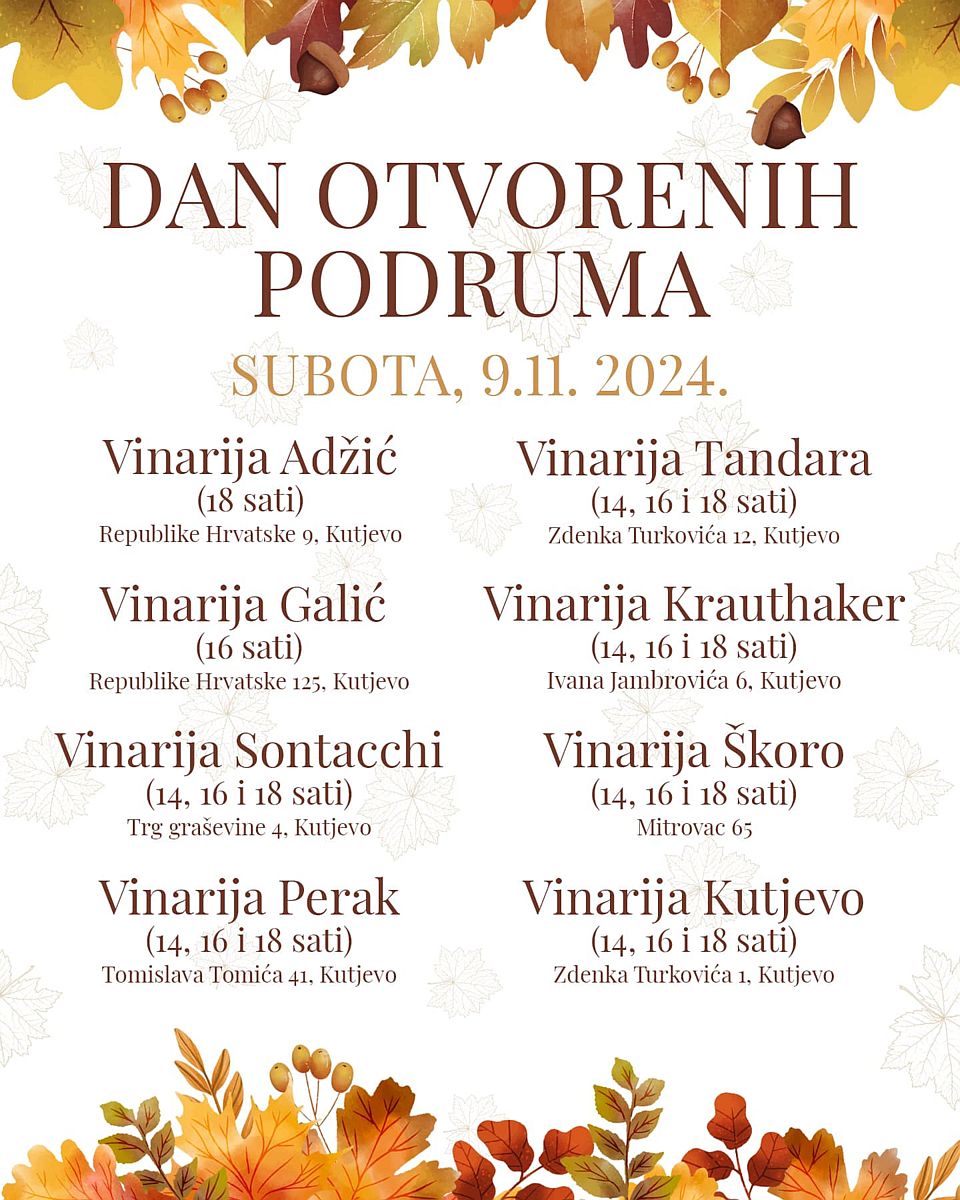 Vinarije koje ove godine sudjeluju i koje se može posjetit su Krauthaker, Adžić, Galić, Sontacchi, Tandara, Perak, Škoro i Kutjevo d.d., a detaljnije termine možete saznati na plakatu u nastavku članka. Prethodna najava bi bila poželjna ako se radi o većim grupama, istaknuo je Krunoslav Sontaki.