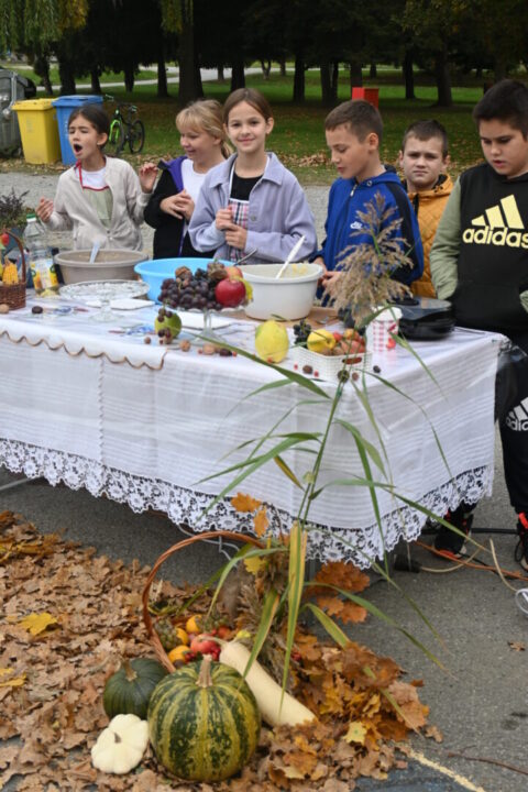 Od 11 do 13 sati školsko je dvorište postalo pravo malo slavonsko sajmište, ispunjeno mirisima pečenih kestena, kolača i toplih slastica. Svaki je razred imao svoj stol ukrašen u jesenskom duhu, a učenici su s ponosom pripremali raznolika jela: