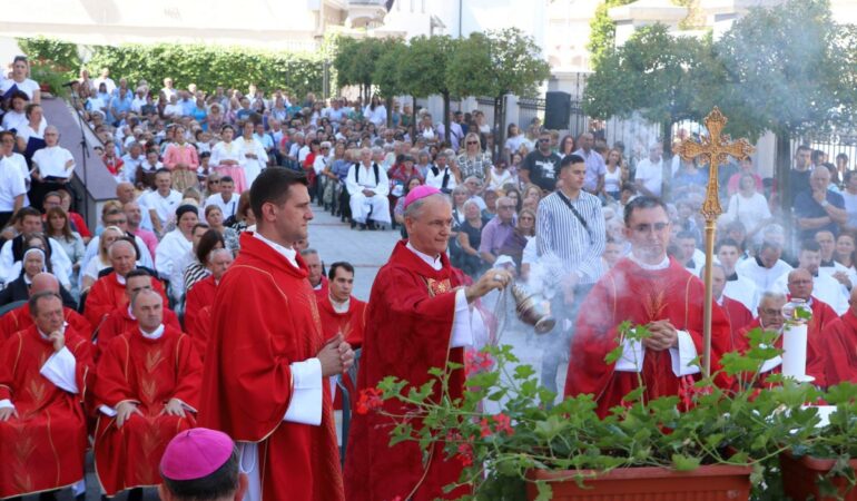 Na blagdan sv. Lovre, đakona i mučenika, u nedjelju 10. kolovoza 2025. središnje biskupijsko euharistijsko slavlje u godini Redovnog jubileja i 1800. obljetnici Svečeva rođenja na otvorenom prostoru ispred Biskupskog doma u Požegi pokraj njegove crkve predvodio je predsjednik HBK-a zagrebački nadbiskup i metropolit Dražen Kutleša. Na slavlju su uz kanonike, svećenike i ostale vjernike, sudjelovali Caritasovi volonteri iz župa Požeške biskupije, biskupijski stipendisti i korisnici Caritasove kuhinje u Požegi.