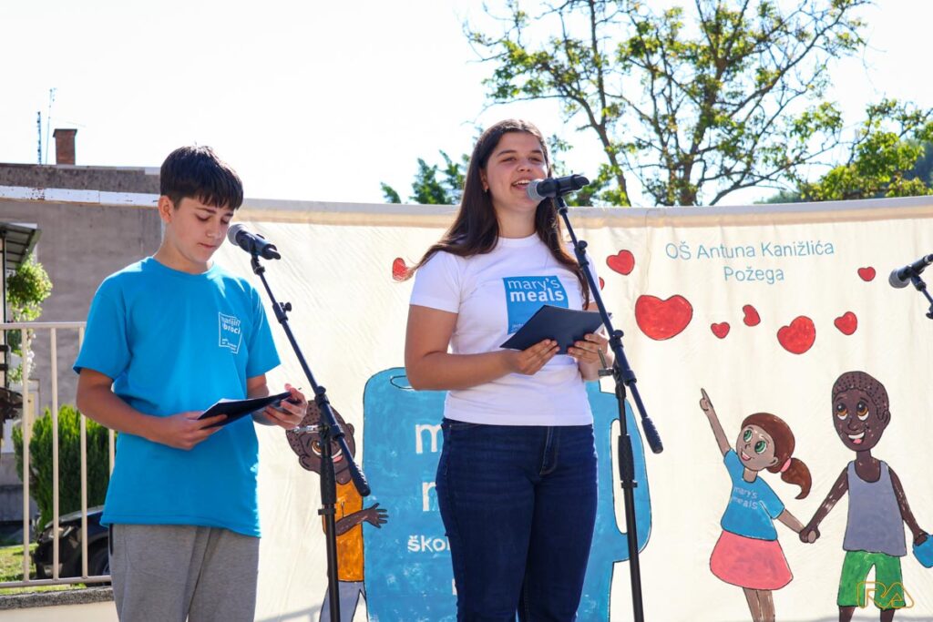 Projekt se provodi u suradnji s Udrugom Marijini obroci Hrvatska koja je dio velikog međunarodnog projekta Mary’s meals koji u najsiromašnijim zemljama svijeta, zahvaljujući donacijama i pomoći volontera, osigurava jedan obrok dnevno izgladnjeloj djeci na rubu najtežeg siromaštva. „Marijin obrok“ djeci je najčešće jedini obrok u danu. Jednostavan koncept Marijinih obroka – dati djetetu jedan kvalitetan obrok dnevno na mjestu obrazovanja, u školi – uspješno nastoji ublažiti jedan od najvećih problema današnjice, a to je glad. Mary’s meals trenutačno u svijetu hrane više od 2 i pol milijuna djece. Da bi jedno dijete polazilo školu i primilo Marijin obrok, potrebno je oko 20 eura godišnje.