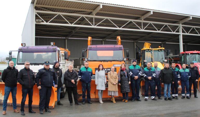 Smotra zimske službe održana je danas u poslovnom krugu tvrtke Komunalac Požega d.o.o. u nazočnosti Irene Martinek, zamjenice gradonačelnika Požege, Jelene Vidović, pročelnice Upravnog odjela za komunalne djelatnosti i gospodarenje Grada Požege, predstavnika Policijske uprave požeško-slavonske te Marijane Puntarić, direktorice Komunalca Požega d.o.o.