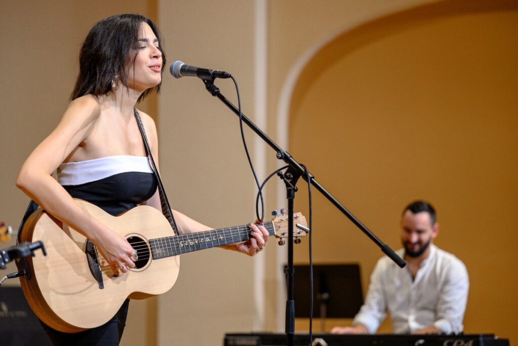 Ispunjena dvorana Glazbene škole Požega uživala je sinoć u koncertu osječke pjevačice i kantautorice Mije Dimšić.