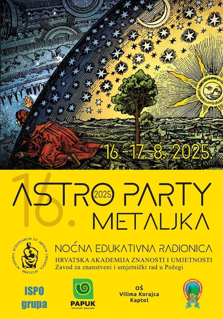 Članovi Hrvatskog planinarskog društva „Sokolovac“ Požega, već tradicionalno, i ove su godine sredinom kolovoza sudjelovali na jedinstvenoj manifestaciji – Astro Partyju. Događaj koji je doživio svoje 16. izdanje, održan je na visoravni Metaljka na Zapadnom Papuku, okupivši brojne zaljubljenike u prirodu, astronomiju i planinarenje. HPD „Sokolovac“ Požega bio je ponosni partner ove manifestacije, čime je još jednom naglasio svoju predanost promicanju boravka u prirodi i edukaciji.