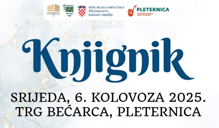 Knjignik za djecu i mlade održat će se u srijedu 6. kolovoza na Trgu bećarca. Knjignik je osmišljen s naglaskom na čitanje i druženje u neformalnom okruženju, a financiran je od strane Ministarstva kulture i medija Republike Hrvatske uz podršku Grada Pleternice i Turističke zajednice Grada Pleternice.