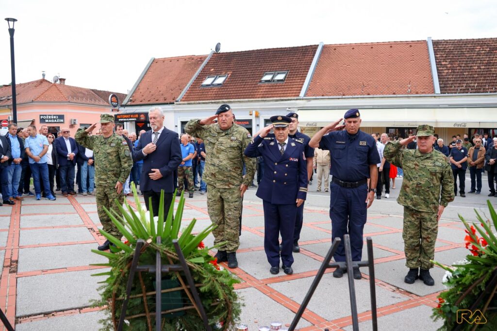 Kod spomen obilježja na Trgu 123. brigade Hrvatske vojske počast su odali predstavnici Koordinacije udruga proisteklih iz Domovinskog rata, Ministarstvo hrvatskih branitelja predvođeno izaslanikom potpredsjednika Vlade i ministra hrvatskih branitelja, državnim tajnikom Zlatanom Bašićem i Ministarstvo obrane predvođeno izaslanikom ministra, voditeljem Područnog odjela za poslove obrane Požega Slavkom Matijevićem, izaslanstvo Požeško-slavonske županije na čelu sa županicom Antonijom Jozić, izaslanstvo Grada Požege na čelu s gradonačelnikom Borislavom Miličevićem, čelnici gradova i općina Požeško-slavonske županije, predstavnici Vojarne 123. brigade, dočasničke škole Damir Tomljanović Gavran, Bojne za obuku dragovoljnih ročnika, Policijske uprave požeško-slavonske i Područne jedinice Ministarstva hrvatskih branitelja Požega, predstavnici političkih stranki te učenici srednjih škola.