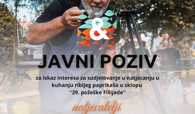 Turistička zajednica Grada Požege kao organizator manifestacije ”Fišijada 2025.”, koja će se održati 5. rujna 2025. godine u Gradskom parku kraj Orljave, poziva sve zainteresirane da se prijave na natjecanje u kuhanju ribljeg paprikaša.