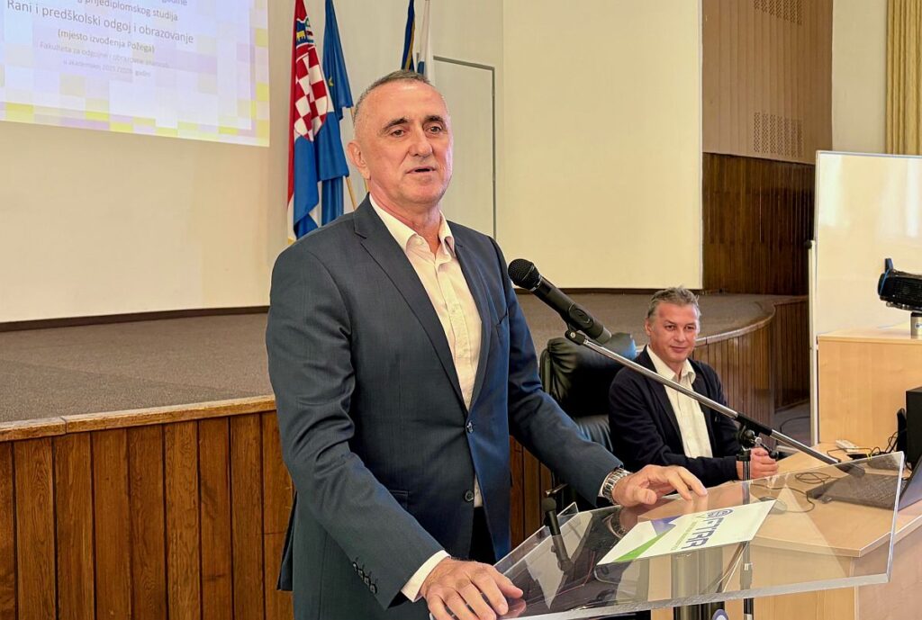 „Zahvaljujem vam što ste odabrali Požegu za mjesto svog studija i zahvaliti Fakultetu na ovom iskoraku koji je učinio. Omogućavajući studentima s područja Požeško-slavonske županije, ali i svima ostalima, pohađanje studija koji nam je danas itekako bitan, s kojim odgovaramo na izazove današnjeg vremena, ali i na smjer Vlade RH – da svako dijete mora imati svoje mjesto u vrtiću. Vrtić nisu samo zgrade koje gradimo iz sredstava na raspolaganju iz EU, vrtić su svi vrijedni djelatnici koji u njemu rade. Tete, odgojiteljice, a nadam se da ćete upravo i vi za tri godine, osim što ćete svjedočiti svojim diplomama, da ćete svjedočiti i svom zapošljavanju u vrtićima na području Požeško-slavonske županije.