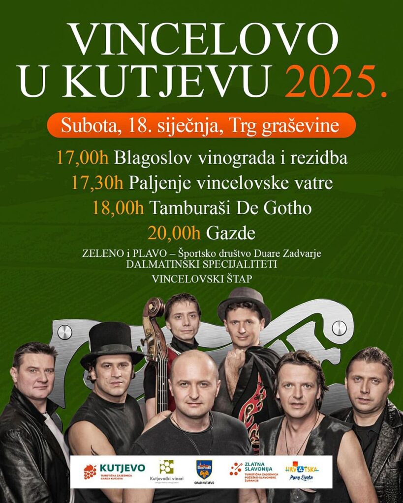 Uz najfiniju kutjevačku vinsku kapljicu, u vincelovskom šatoru atmosferu će zagrijati Tamburaški sastav De Gotho i Gazde.