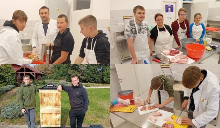 Pod stručnim vodstvom Mateja Bošnjakovića, mag. ing. preh. tehnologije, nastava u okviru modula „Sirovine za proizvodnju mesa i mesnih proizvoda“ pretvara se u pravo iskustvo stvaranja. Učenici uče sve faze mesarske proizvodnje – od prepoznavanja pasmina stoke i obrade sirovina do dimljenja, sušenja i oblikovanja gotovih proizvoda.